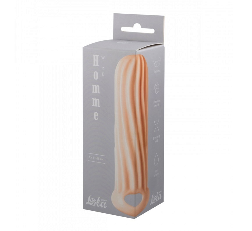 Насадка Homme Wide создана для тех, кто хочет разнообразить интимную близость и усилить ощущения обоих партнеров. Гипоаллергенный материал ТПЕ с текстурой натуральной кожи обеспечивает безопасность и приятные тактильные ощущения.