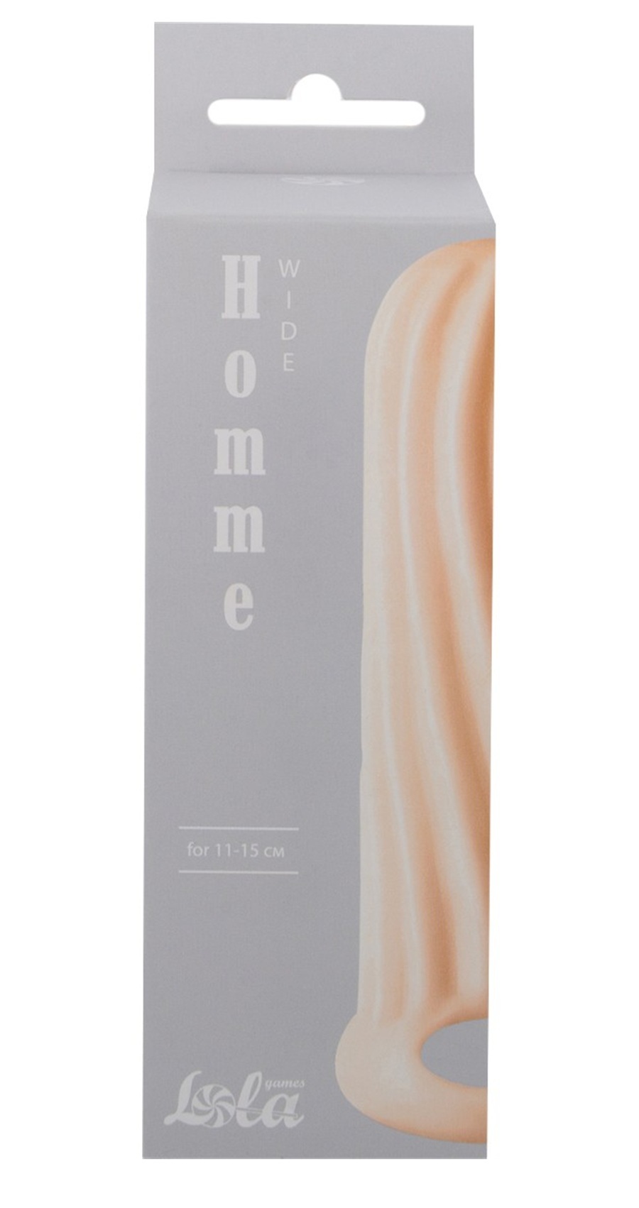 Насадка-удлинитель Homme Wide с фиксирующим кольцом, ТПЕ, 13 см, бежевый