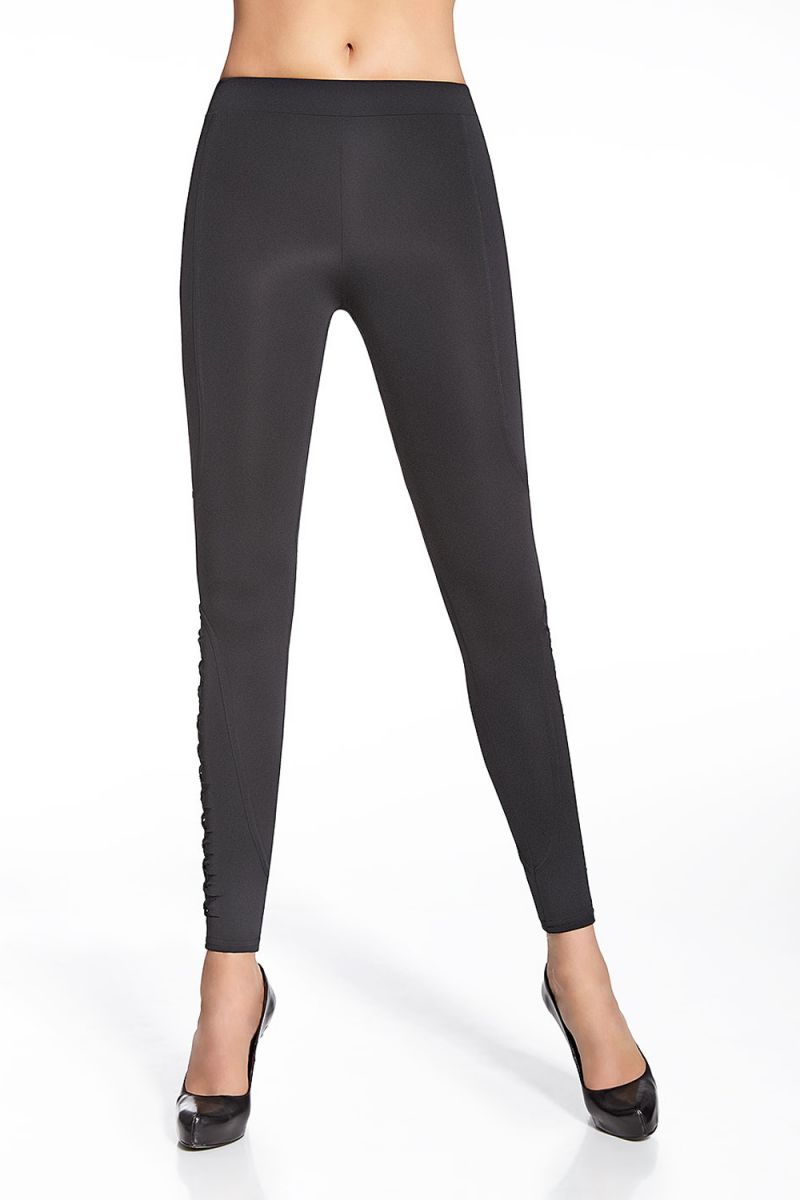 Главной особенностью модели являются декоративные кружевные вставки, которые добавляют образу женственности и шарма. Классический черный цвет делает легинсы универсальным базовым элементом, который легко комбинируется с различной одеждой.