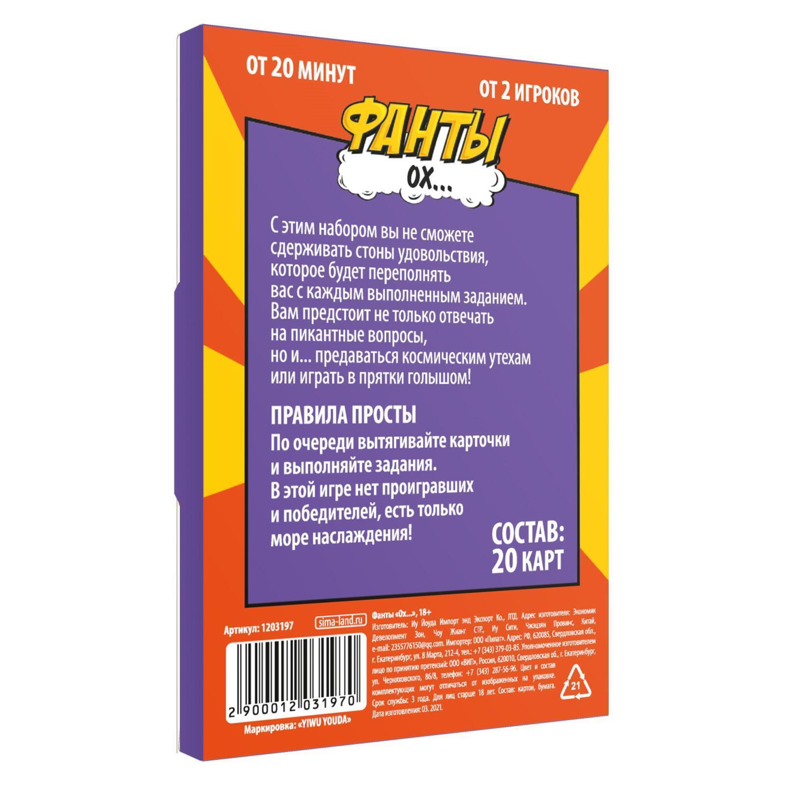 Не требует подготовки — просто откройте коробку и позвольте игре стать началом вашего незабываемого вечера. Все задания направлены на взаимное удовольствие и укрепление эмоциональной связи.