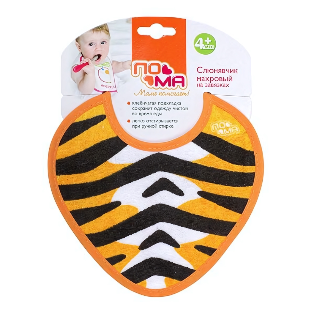 Слюнявчик махровый с тигриным принтом, 80% хлопок, завязки, ПЭВА-подкладка, 4+ месяцев