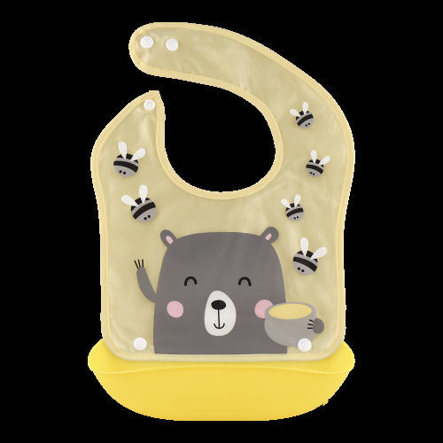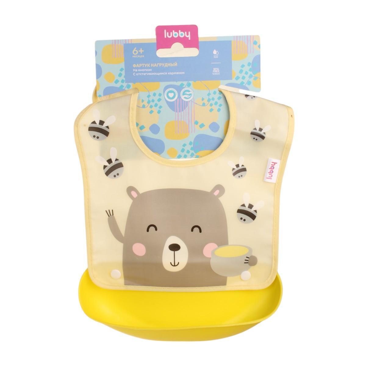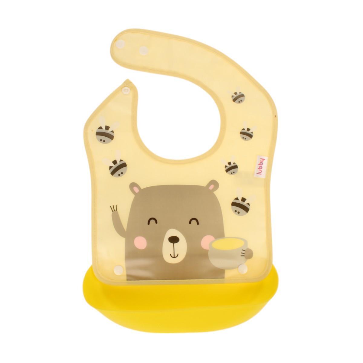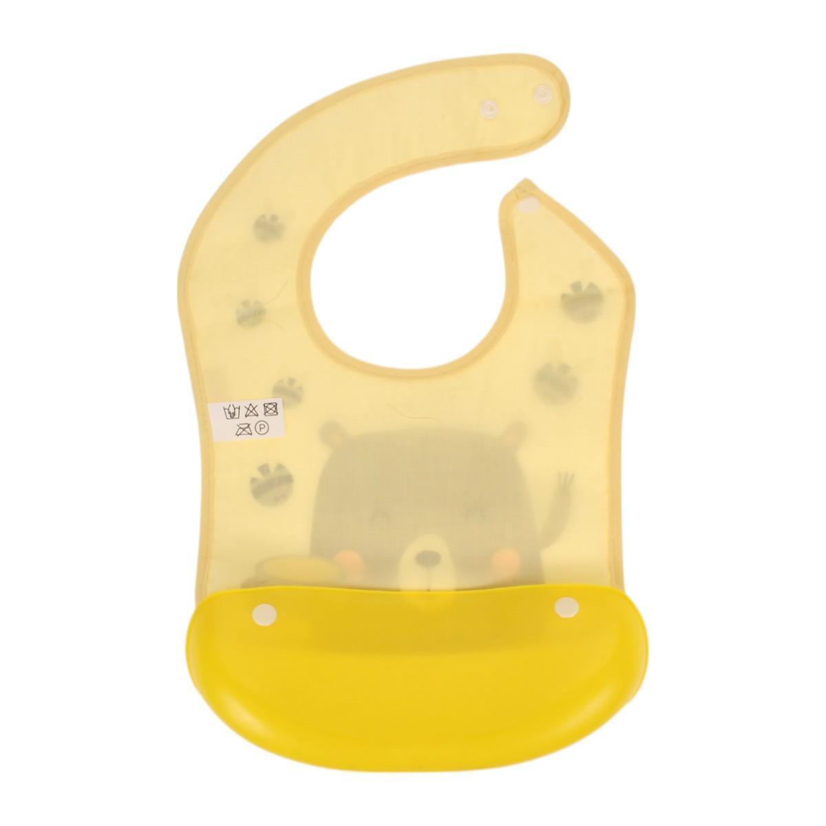 Нагрудник детский с отстегивающимся карманом, водоотталкивающий, 33х24 см, полиэстер, желтый с медвежонком, от 6 месяцев