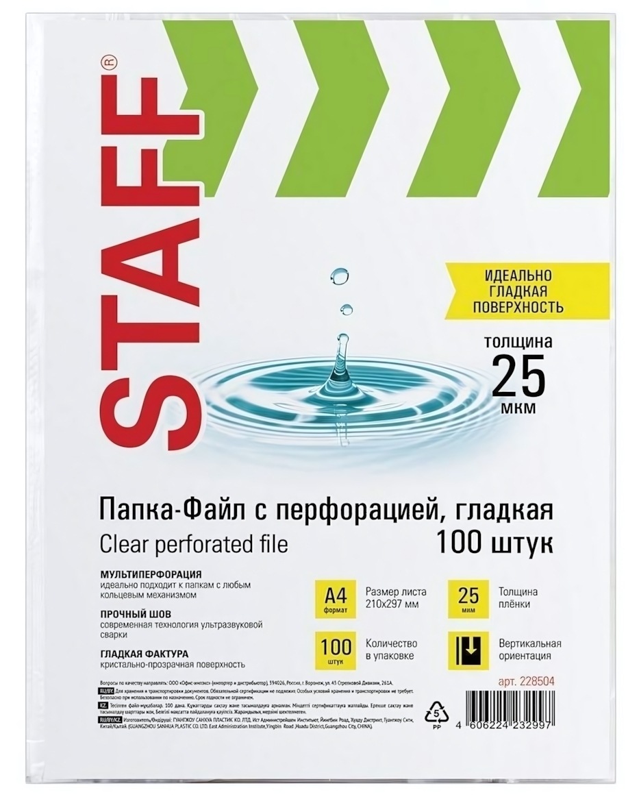 Прозрачные файлы формата А4 (210х297 мм) позволяют мгновенно идентифицировать содержимое. В упаковке 100 штук — этого хватит для создания структурированного архива или работы с большим проектом. Гладкая поверхность исключает застревание бумаги при печати на принтере.