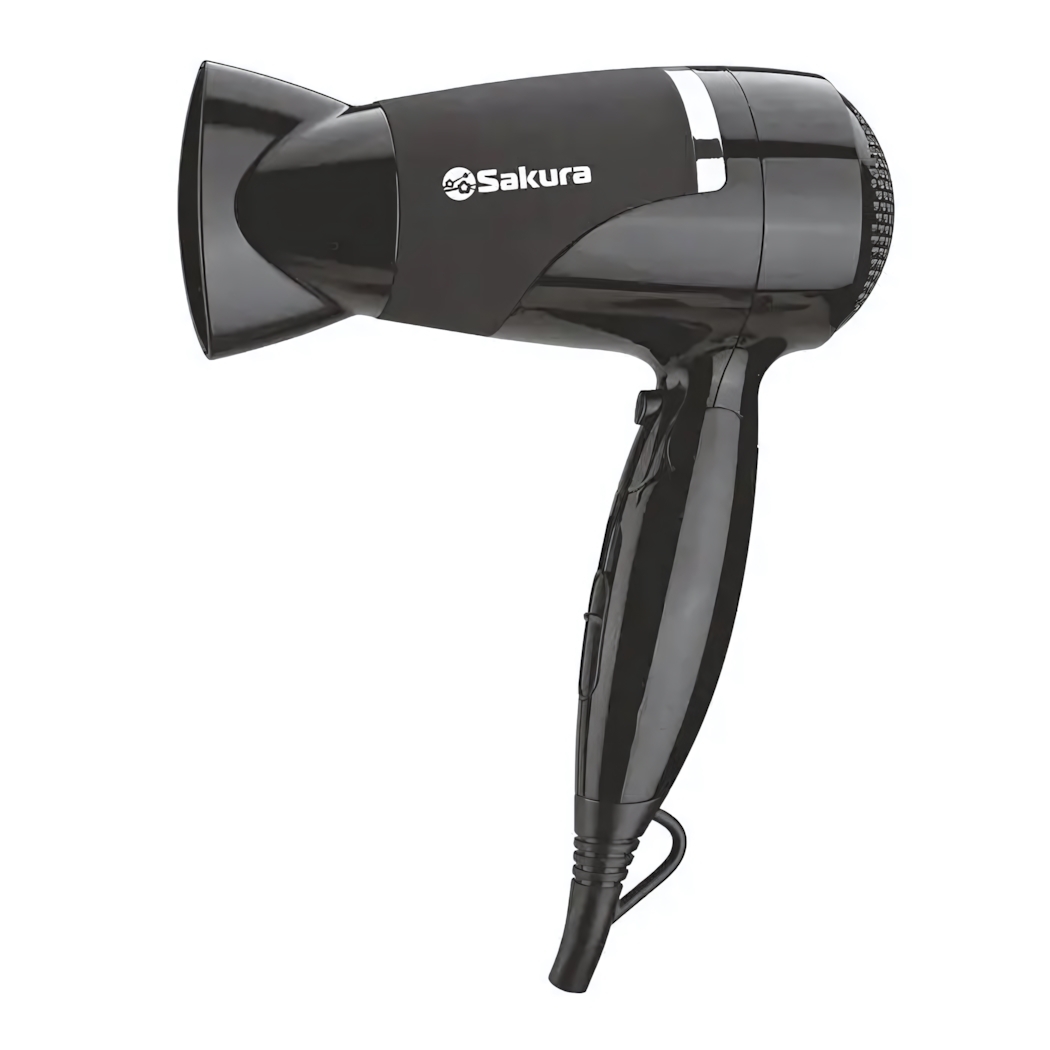 Фен SAKURA SA-4040BK 1600-1800Вт, 2 скорости, черный глянец, насадка для укладки