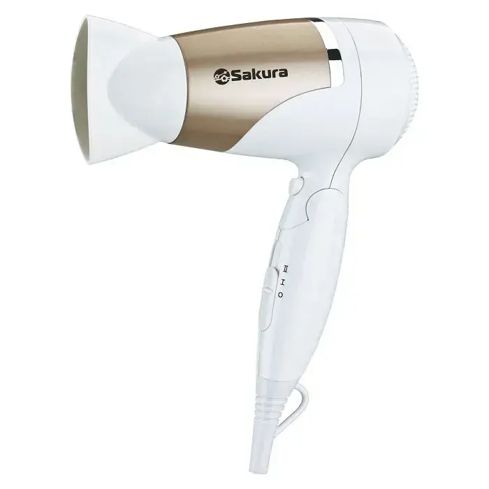 Фен Sakura sa-4040w, 1800вт, 2 режима/скорости, белый с золотом
