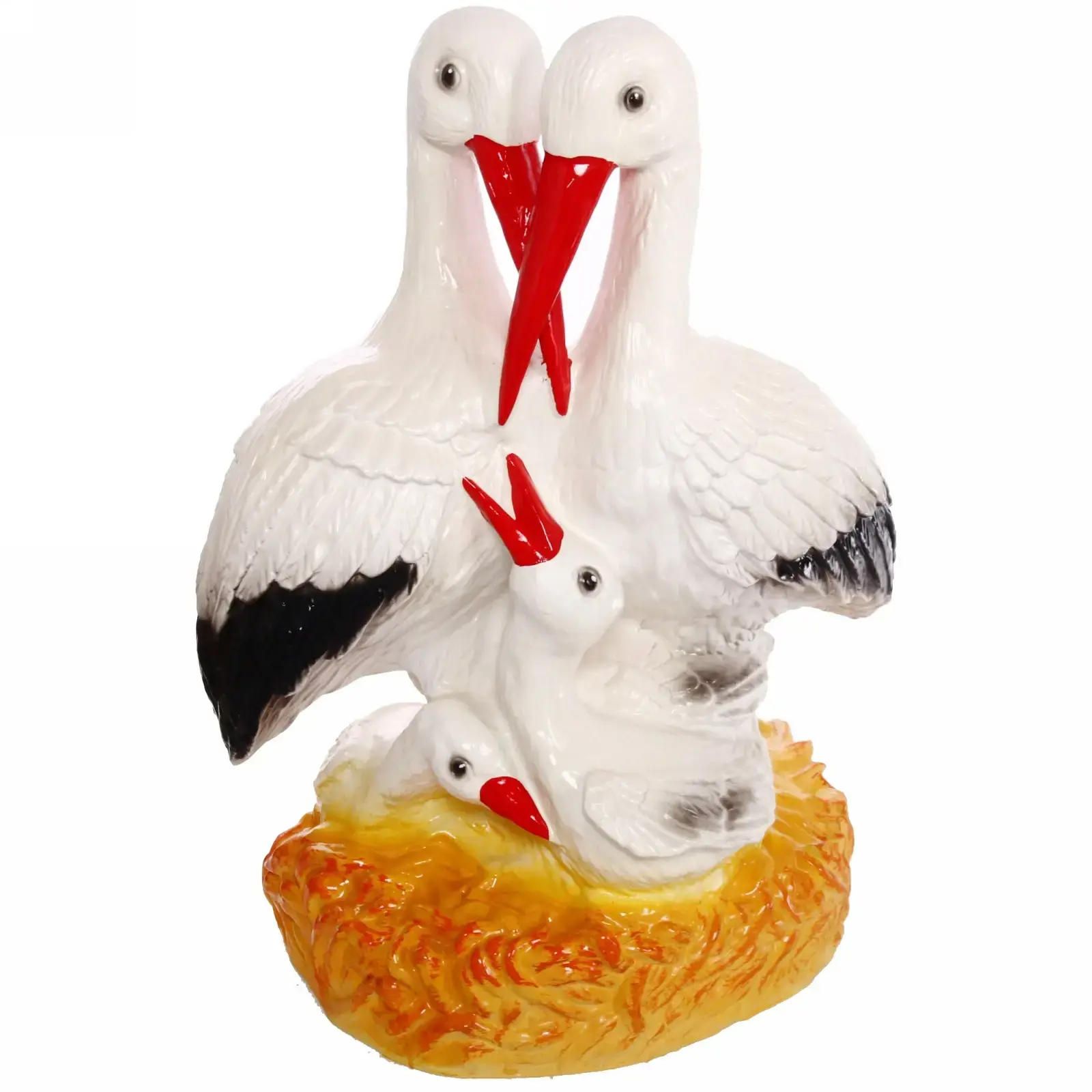 Фигура из гипса 'Аисты-семья', 55см, белый/черный/красный, для сада и интерьера