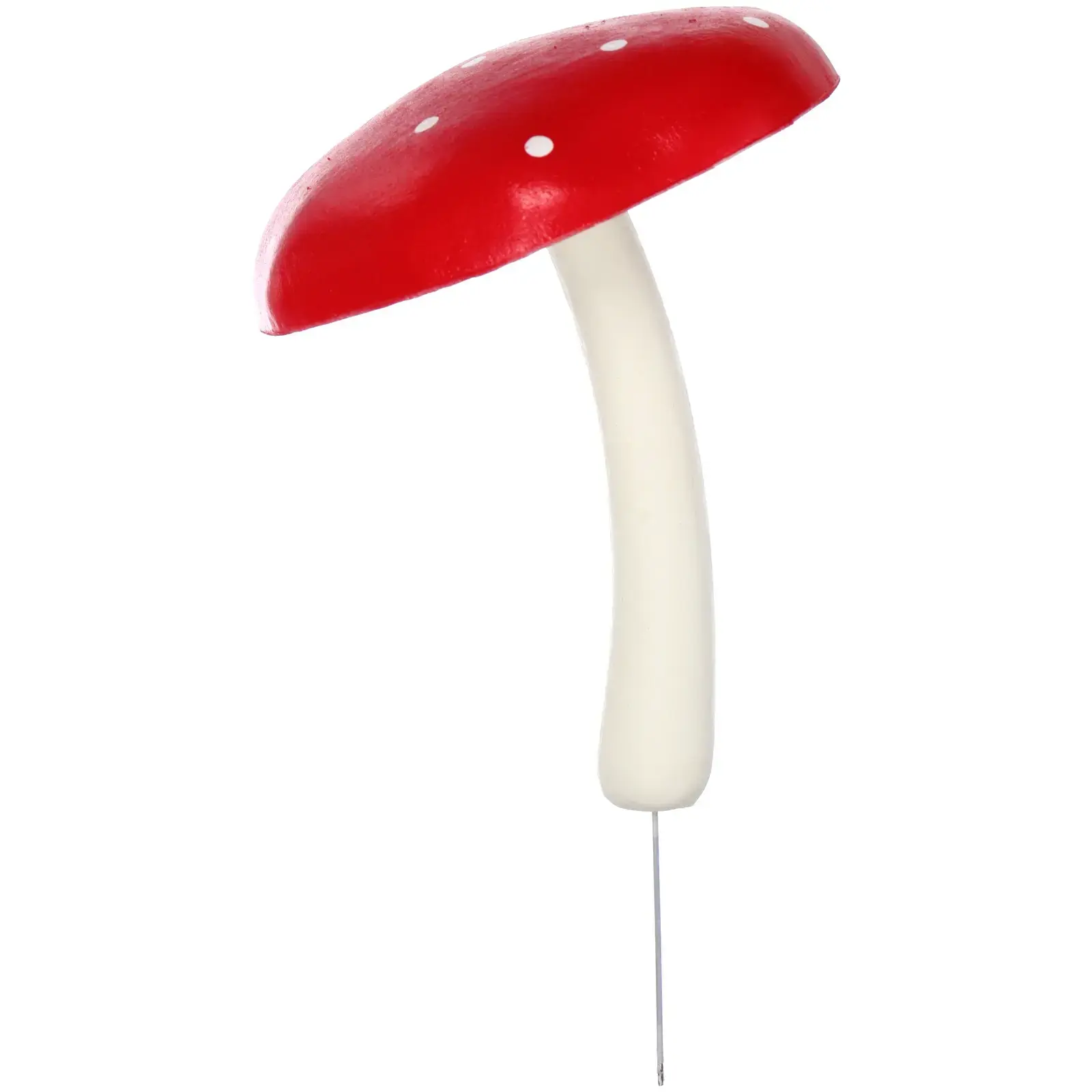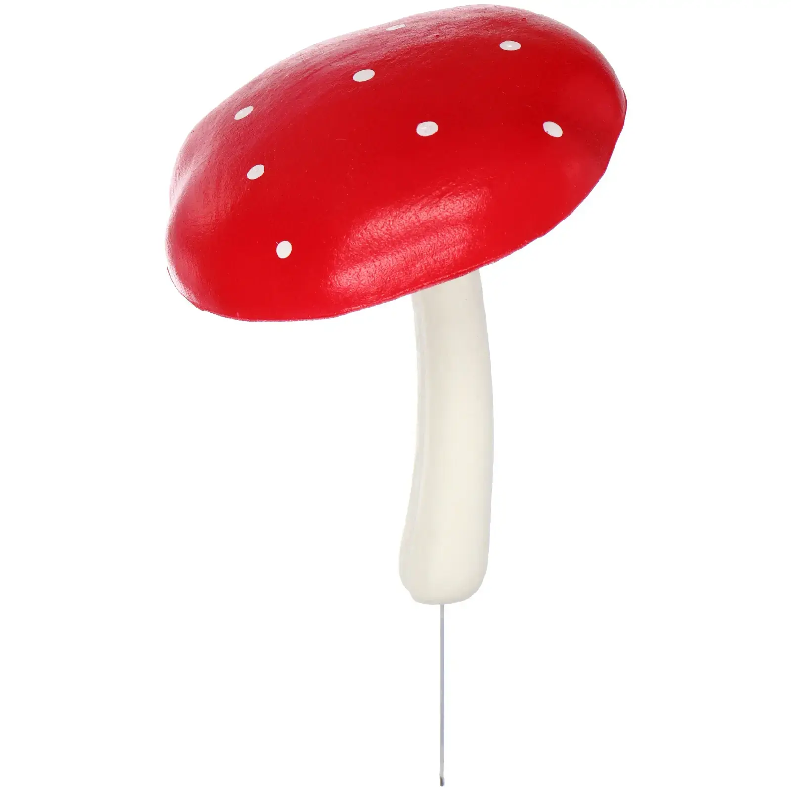 Фигура на спице 'Гриб - Мухомор' 14 см, красный / ПВХ и металл, для сада