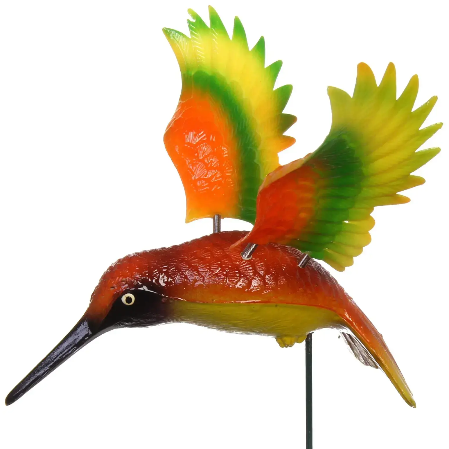 Фигурка «Колибри» идеально подходит для установки в саду, на террасе или балконе. Она легко втыкается в землю благодаря длинному металлическому стержню, что делает её удобной в использовании. Этот элемент декора станет отличным дополнением к цветочным клумбам и другим растениям, создавая гармоничное сочетание с природой.