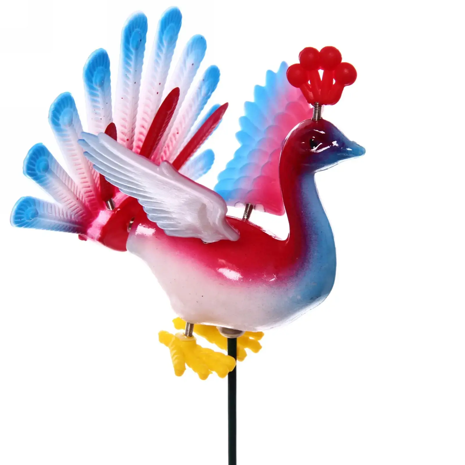 Просто воткните фигурку в землю — устойчивое крепление на спице легко адаптируется к любому участку. Подойдёт для цветников, грядок, клумб, дорожек, а также может использоваться возле овощных культур для отпугивания нежелательных пернатых гостей. Благодаря яркому дизайну и сочетанию оттенков, «Павлин» гармонично впишется в любой стиль оформления пространства — от дачного до городского.