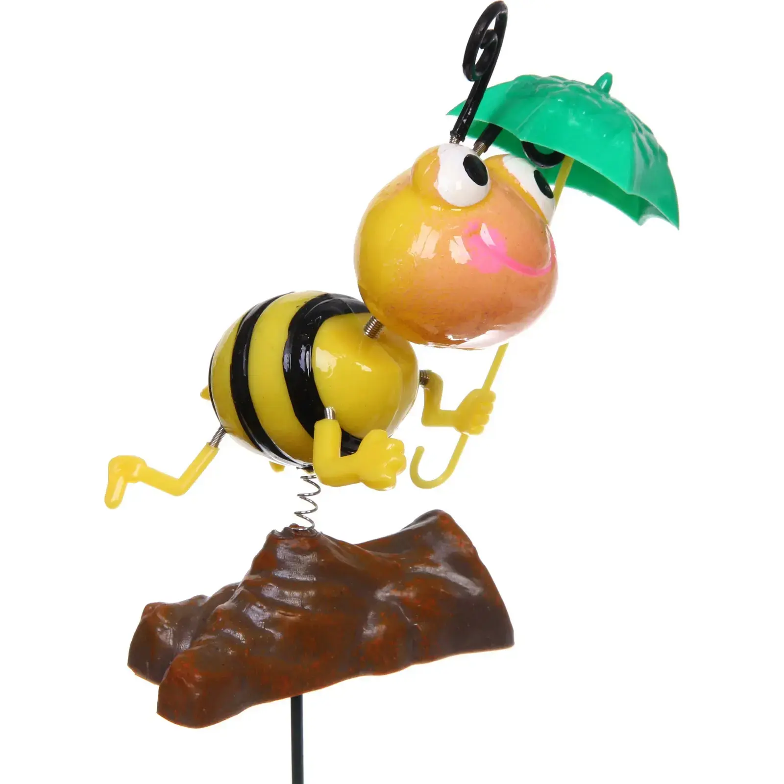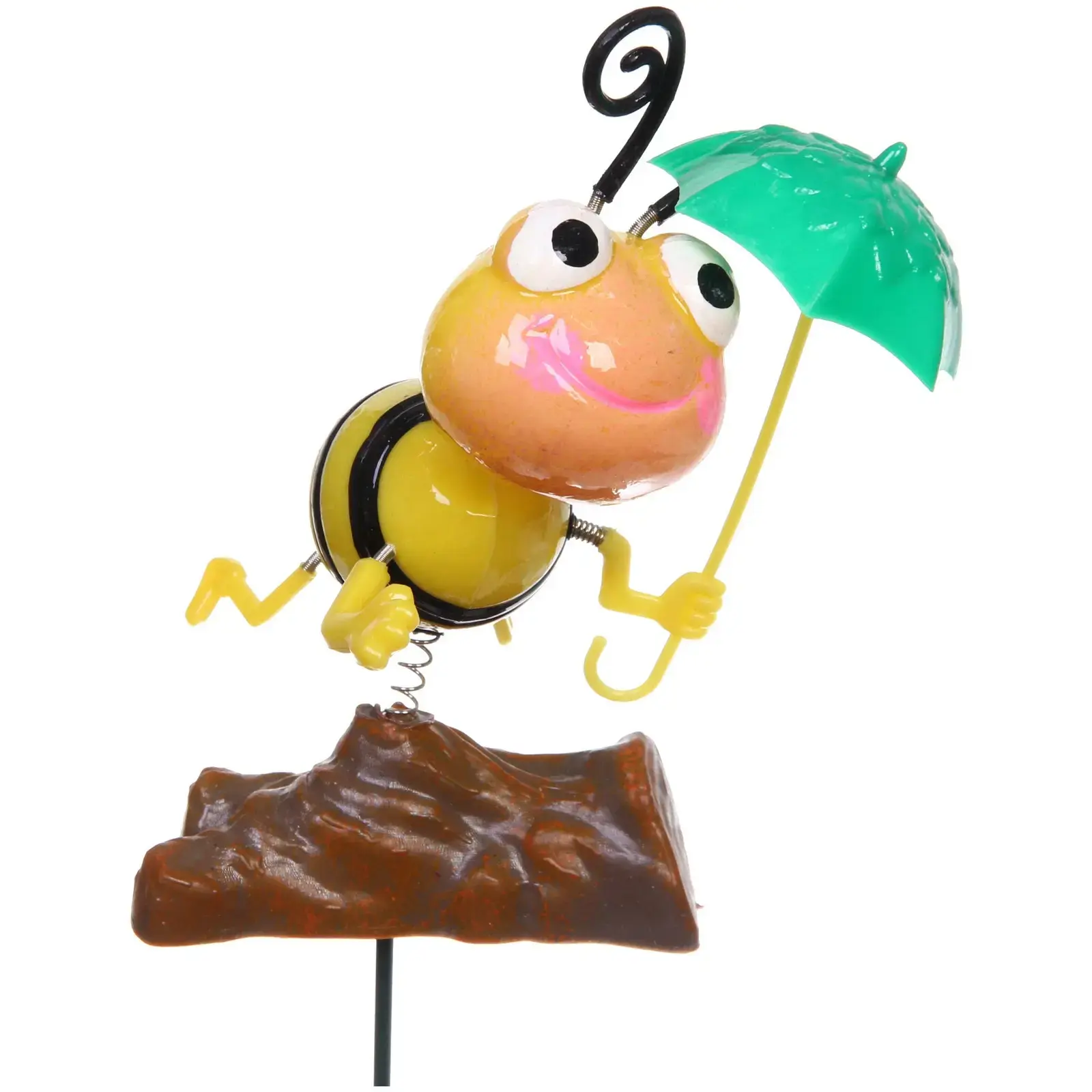 Яркая садовая фигура на спице: пчёлка с зонтиком для декора