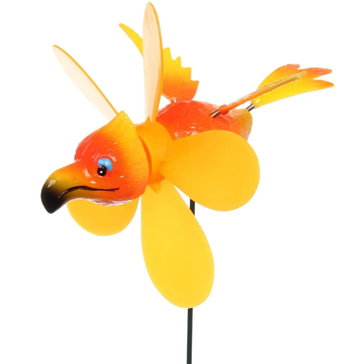 Декоративная фигура на спице «Попугай» не только поднимет настроение красочным дизайном, но и поможет легко отпугнуть нежелательных птиц с вашего участка. Яркая расцветка сочетает сочный оранжевый и солнечный жёлтый, создавая акцент в любом дворе или огороде. Установка займет минимум времени — просто воткните стержень в грунт, и ваша зона сразу преобразится.