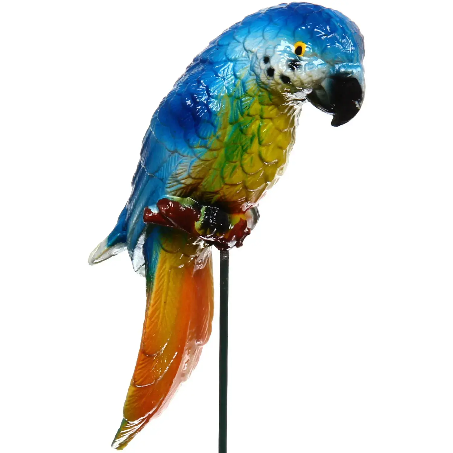 Размеры фигурки составляют 14х8х40 см, что делает ее заметной, но не слишком громоздкой. Изготовленная из качественного металла и пластика, она устойчива к внешним воздействиям и прослужит вам долго. Яркие цвета попугая, включая голубой, желтый и зеленый, добавят красок в ваш сад и создадут атмосферу тропического рая.