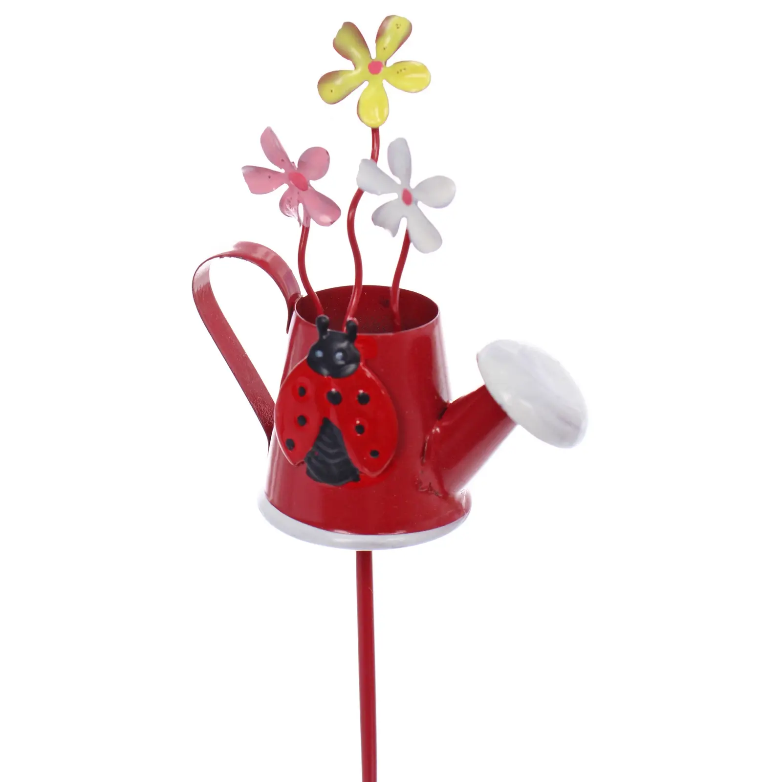 Садовый декор «Цветочная лейка» с цветами и божьей коровкой, металл/пластик, 5х26 см, красный