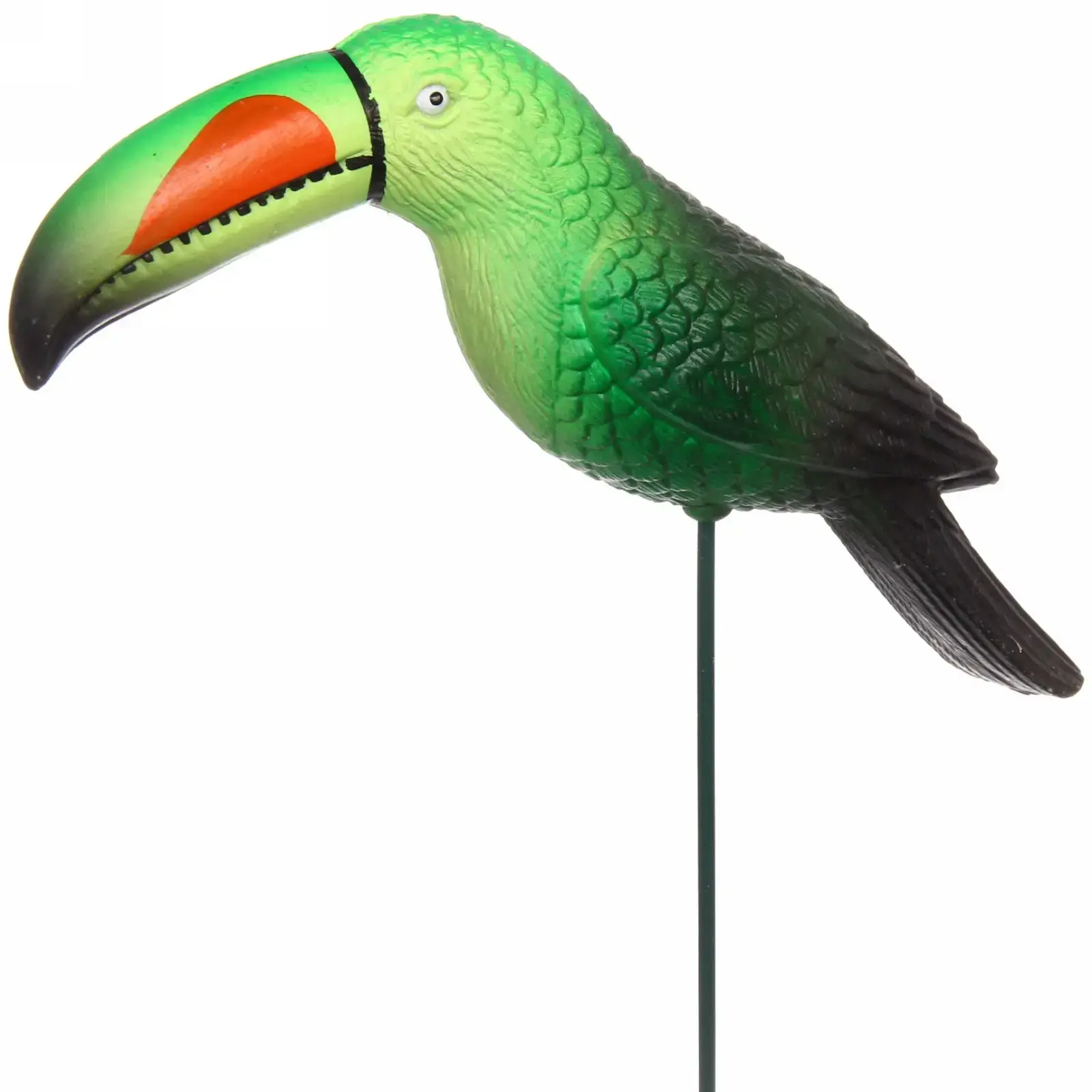 Создайте атмосферу тропического уюта и радости во дворе — декоративная фигура тукана на металлической спице привлечёт внимание и подарит заряд позитива каждый день. Пластиковый тукан выполнен в насыщенных зелёных оттенках с реалистичным градиентом и ярким клювом, воссоздавая образ экзотической птицы.