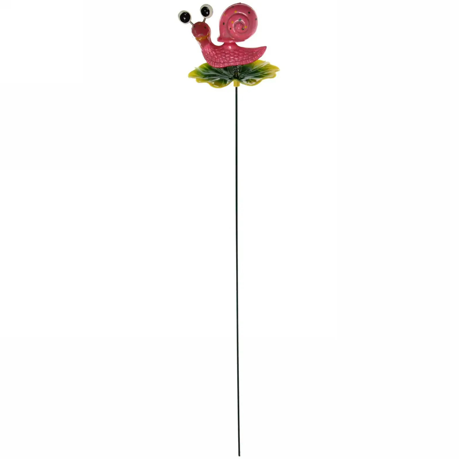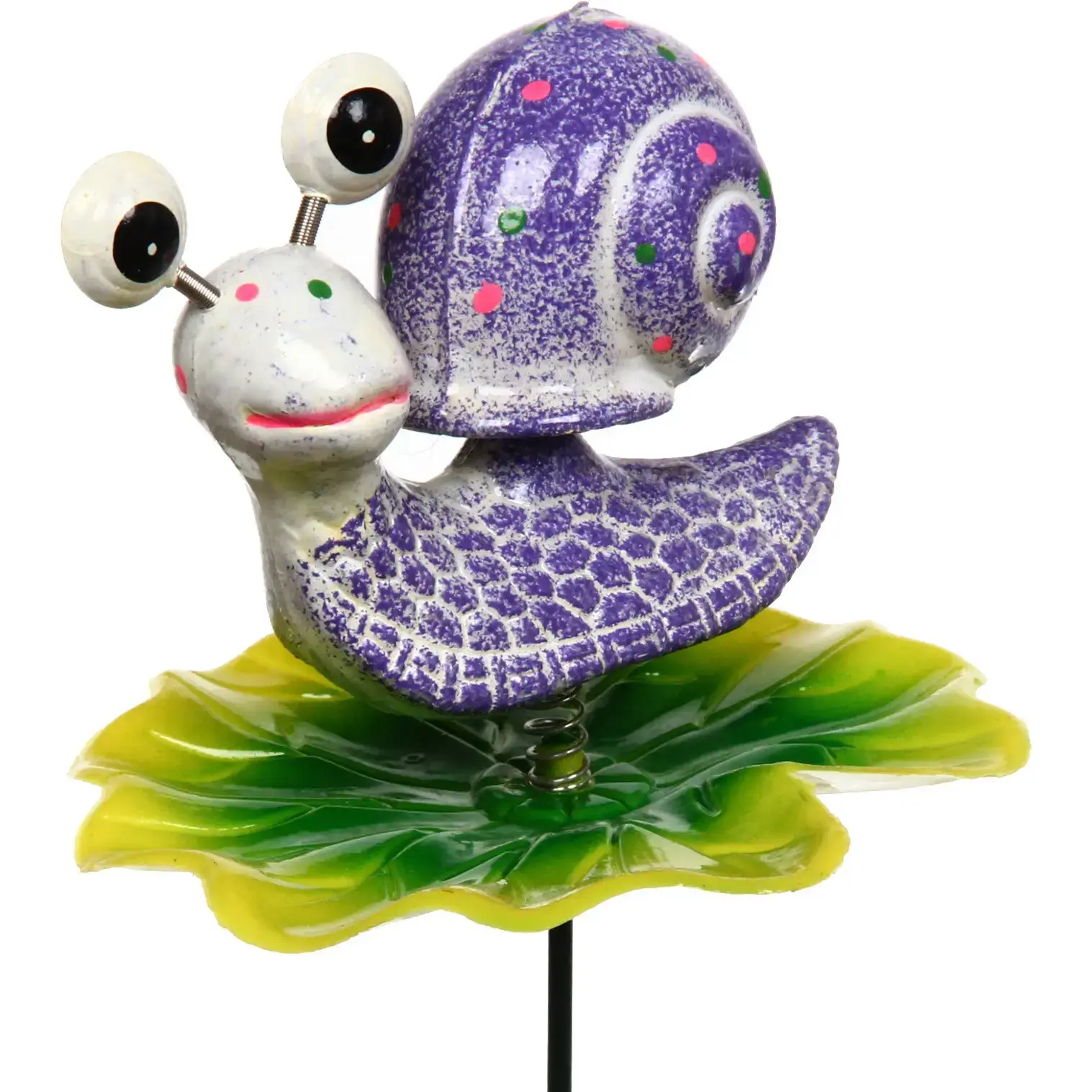 Изделие выполнено из пластика (фигура и лист) и металла (спица), это обеспечивает долговечность и устойчивость к погодным условиям. Цвет корпуса — розовый или фиолетовый, поверхность покрыта разноцветными декоративными точками. Пружинящее основание позволяет улитке слегка двигаться даже при слабом ветре, усиливая визуальный эффект. Благодаря универсальному дизайну, фигура гармонично впишется в любой ландшафтный стиль.