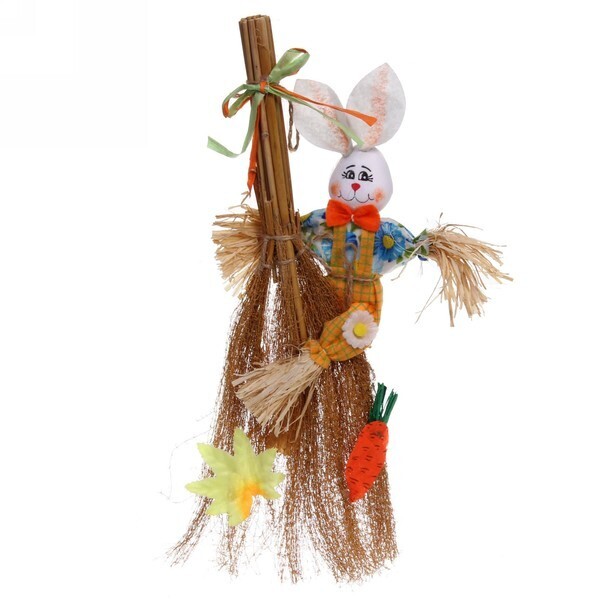 Размер фигурки составляет 37 см, что делает её заметной, но не слишком громоздкой. Используемые материалы — солома, дерево и текстиль — обеспечивают прочность и долговечность. Яркие цвета, такие как белый, оранжевый, красный, синий и зеленый, делают её привлекательной и веселой. Фигурка также включает в себя метлу, что добавляет ей оригинальности и завершенности.