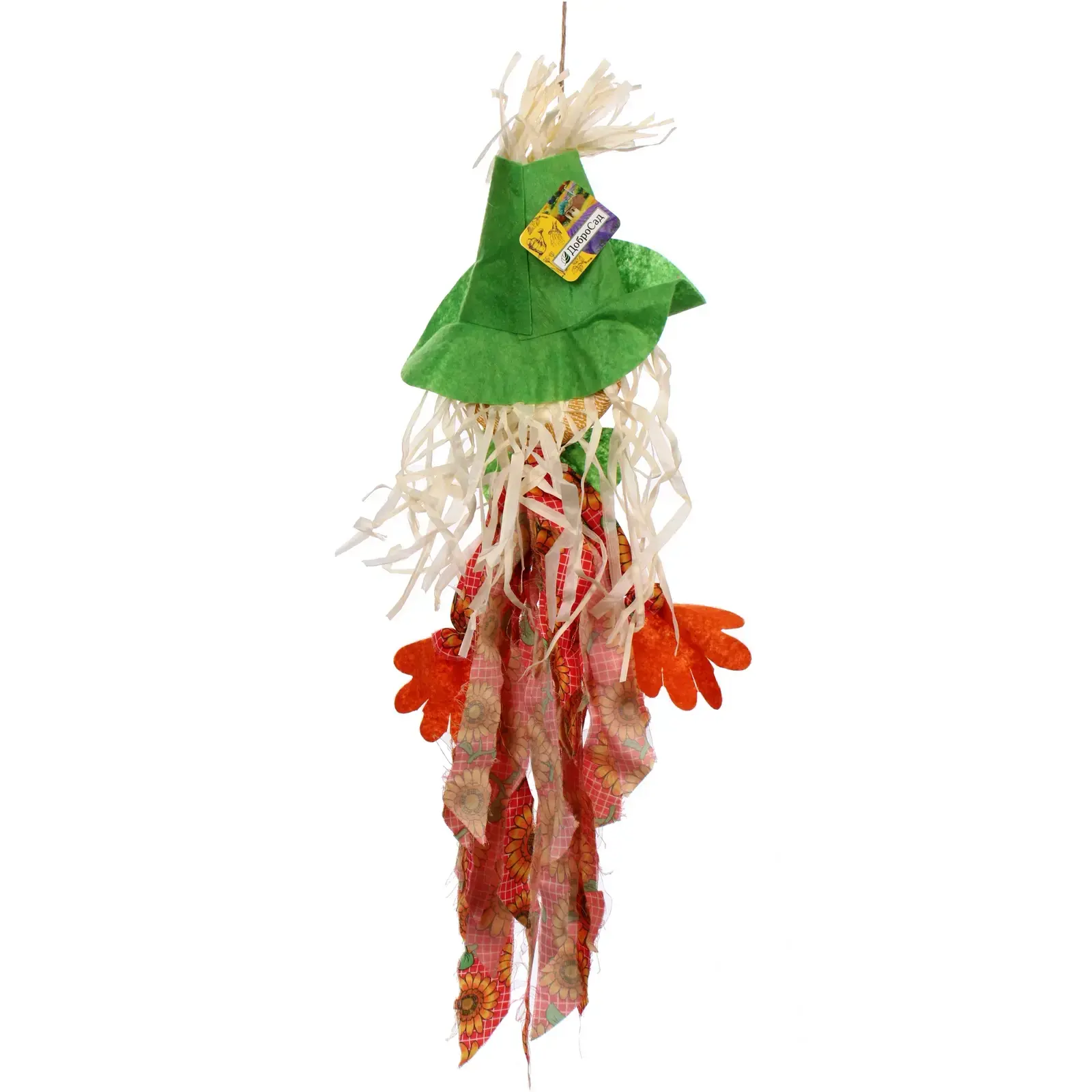 Фигура садовая 'Пугало-Флора', 60см, текстиль/дерево, салатовая шляпа