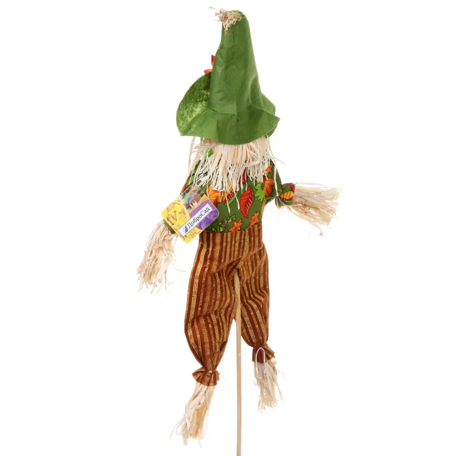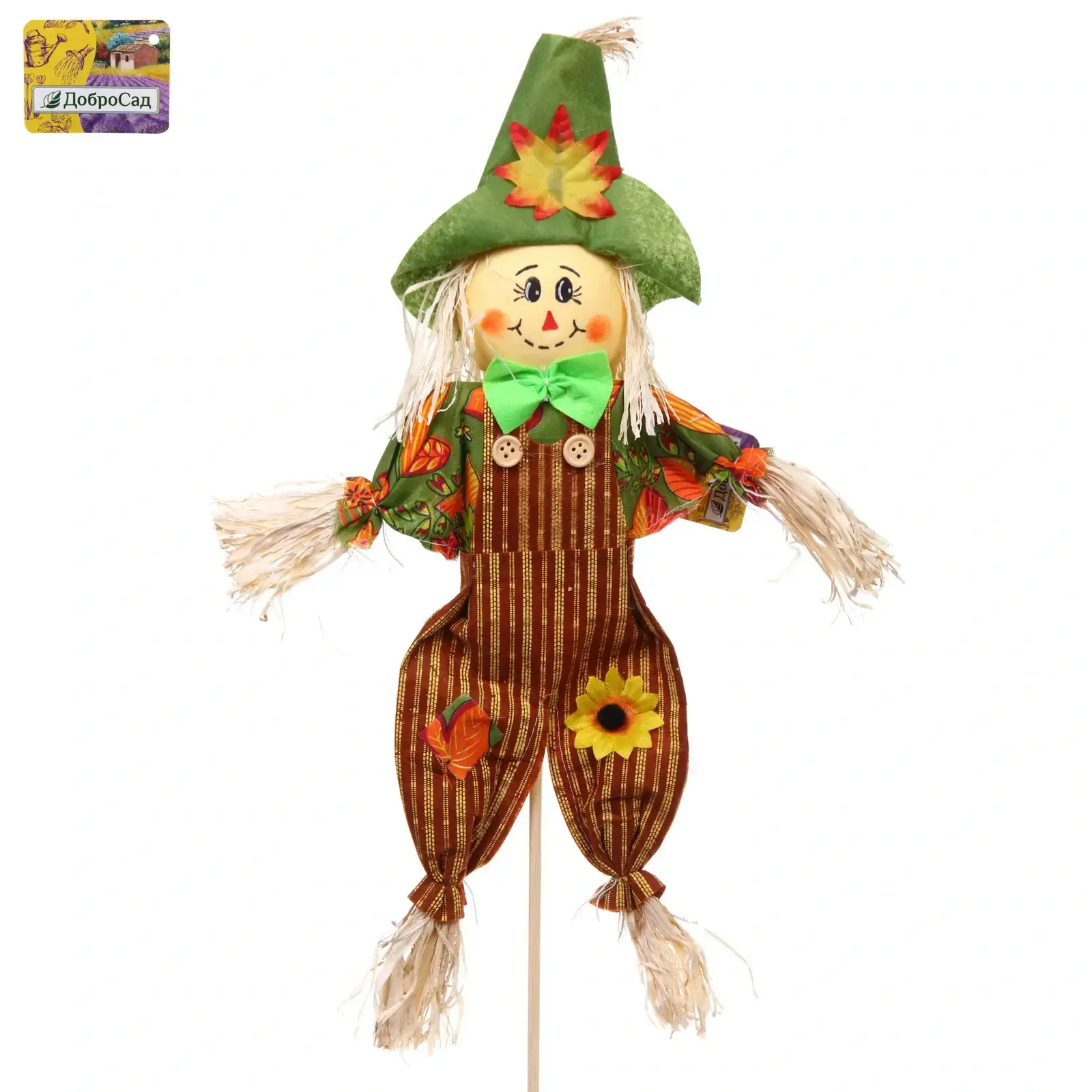 Эта яркая садовая фигура станет не только украшением вашего участка, но и добавит ему оригинальности и веселья. Изготовленная из качественных материалов, она гарантирует долговечность и надежность, что делает её идеальным выбором для любого сада. Пугало выполнено в ярких цветах, с зеленой шляпой и декоративными элементами, такими как цветы и листья, что придаёт ему особый шарм.