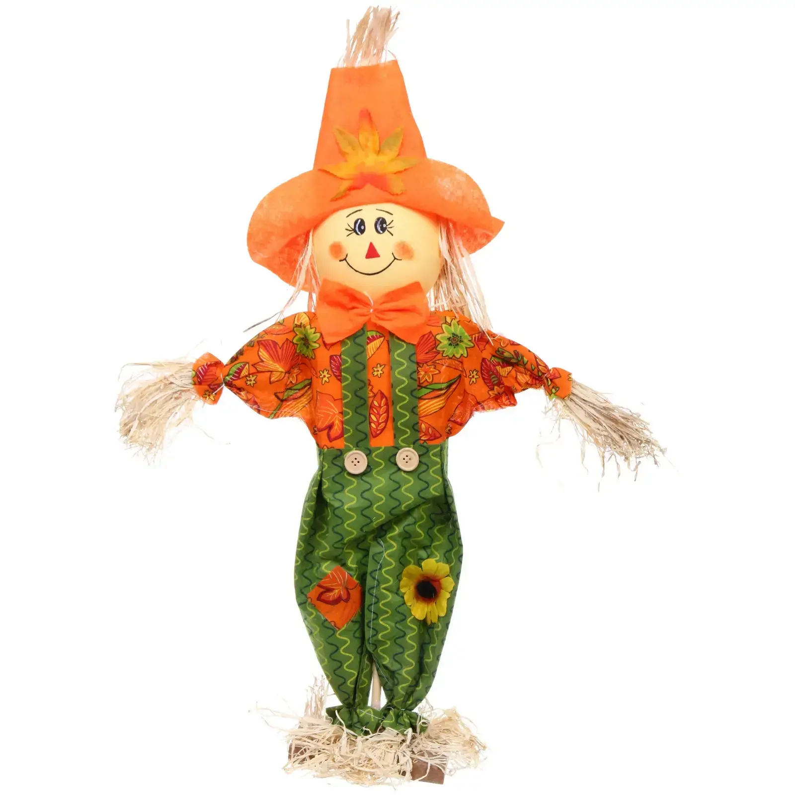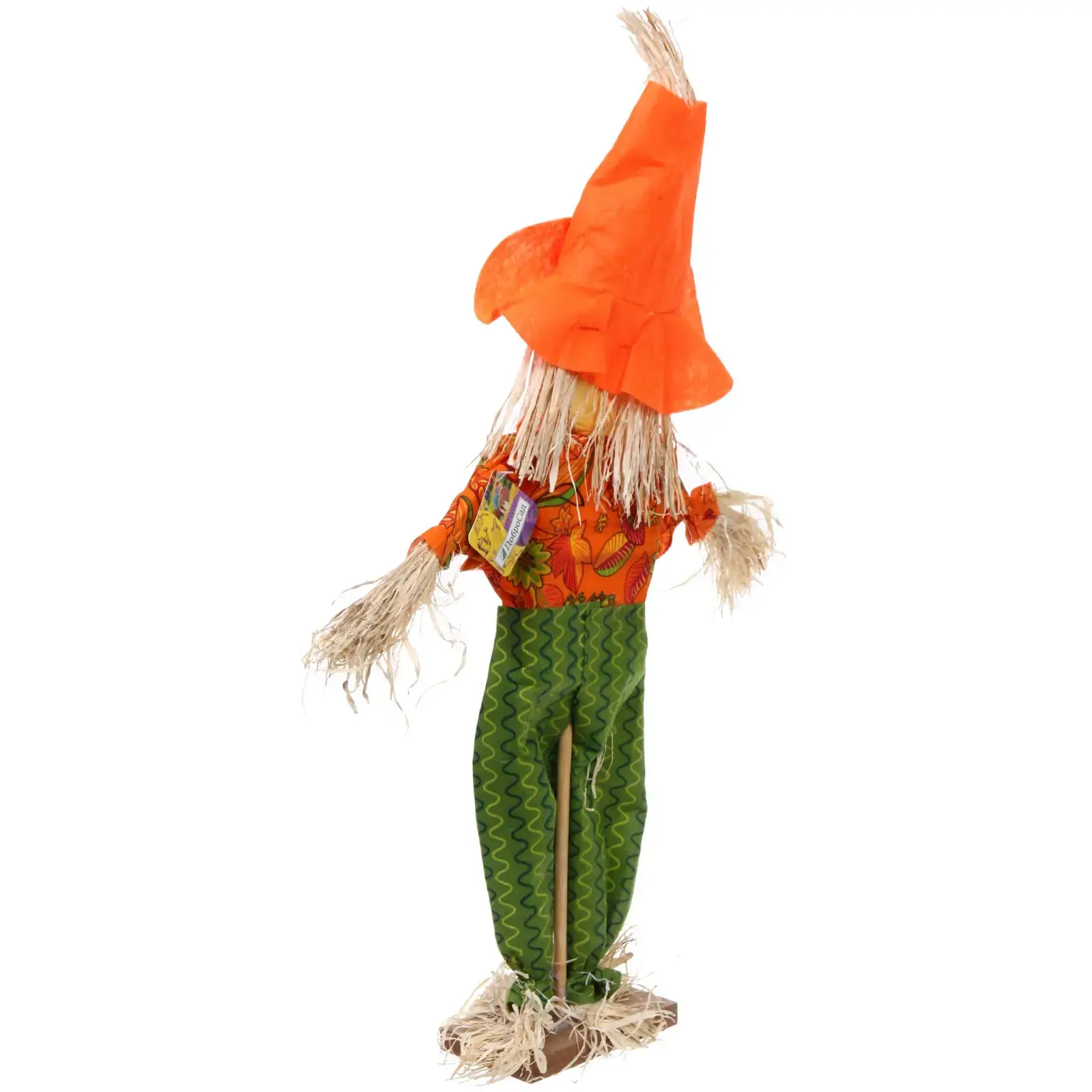 Эта яркая садовая фигура станет не только украшением вашего участка, но и добавит ему оригинальности и веселья. Изготовленная из качественных материалов, она гарантирует долговечность и надежность, что делает её идеальным выбором для любого сада. Пугало высотой 60 см с оранжевой шляпой и цветным костюмом привнесет в ваш ландшафт нотку креативности и радости.