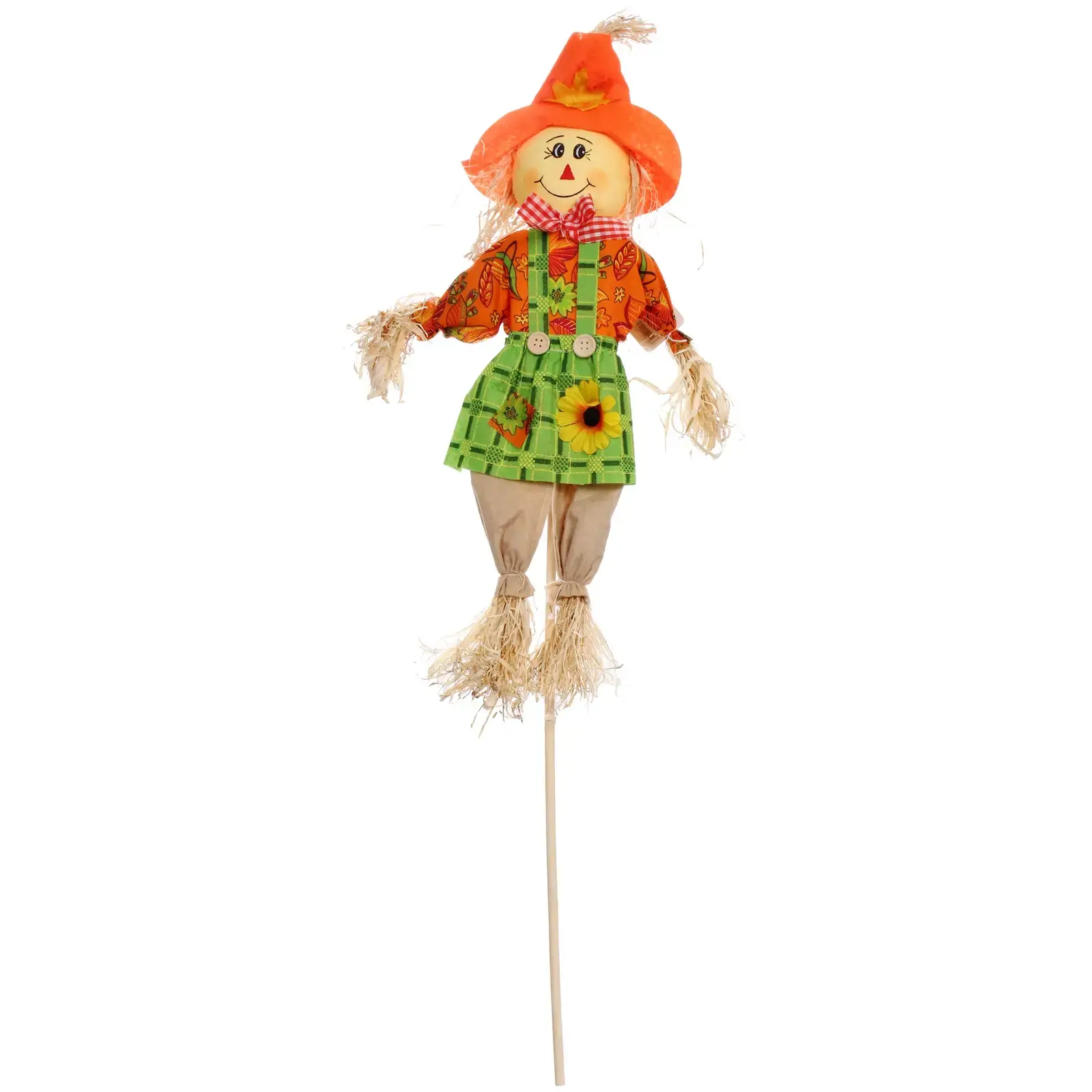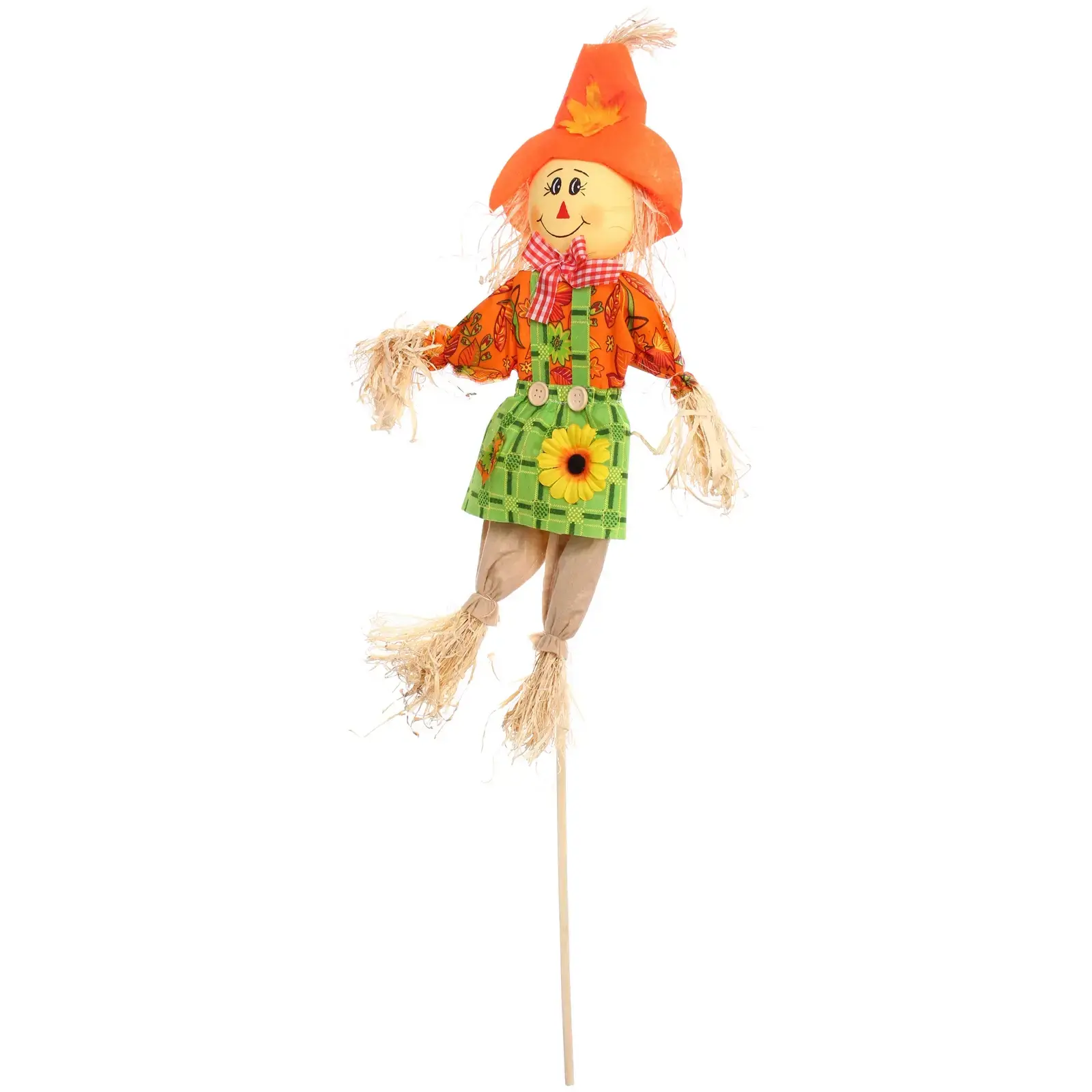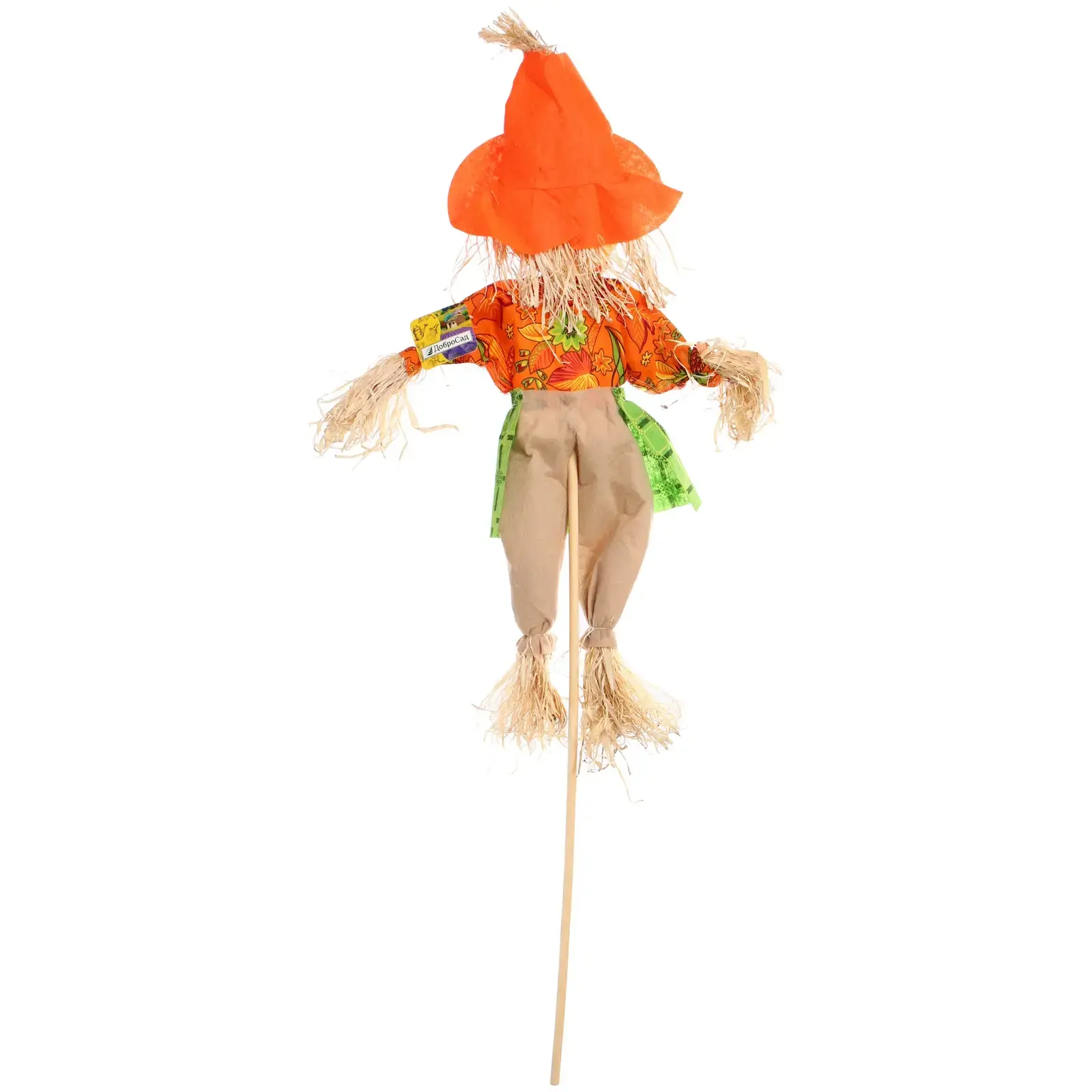 Фигура предназначена для использования в качестве декоративного элемента в саду или на даче. Она легко устанавливается на грунт благодаря длинному деревянному стержню, что позволяет разместить её в любом удобном месте. Пугало отлично подходит для оформления праздников, таких как Хэллоуин, или просто для создания уютной атмосферы в вашем саду.