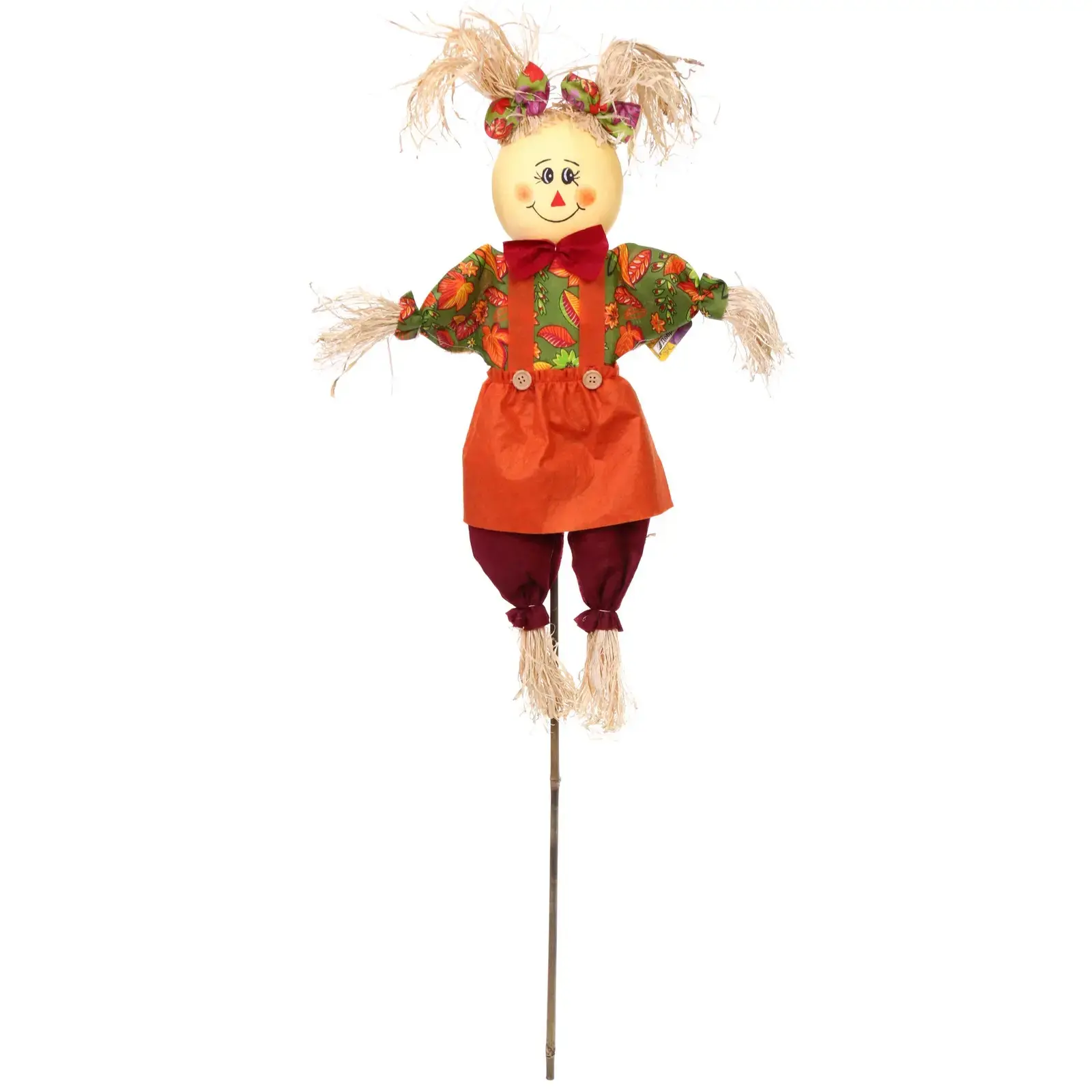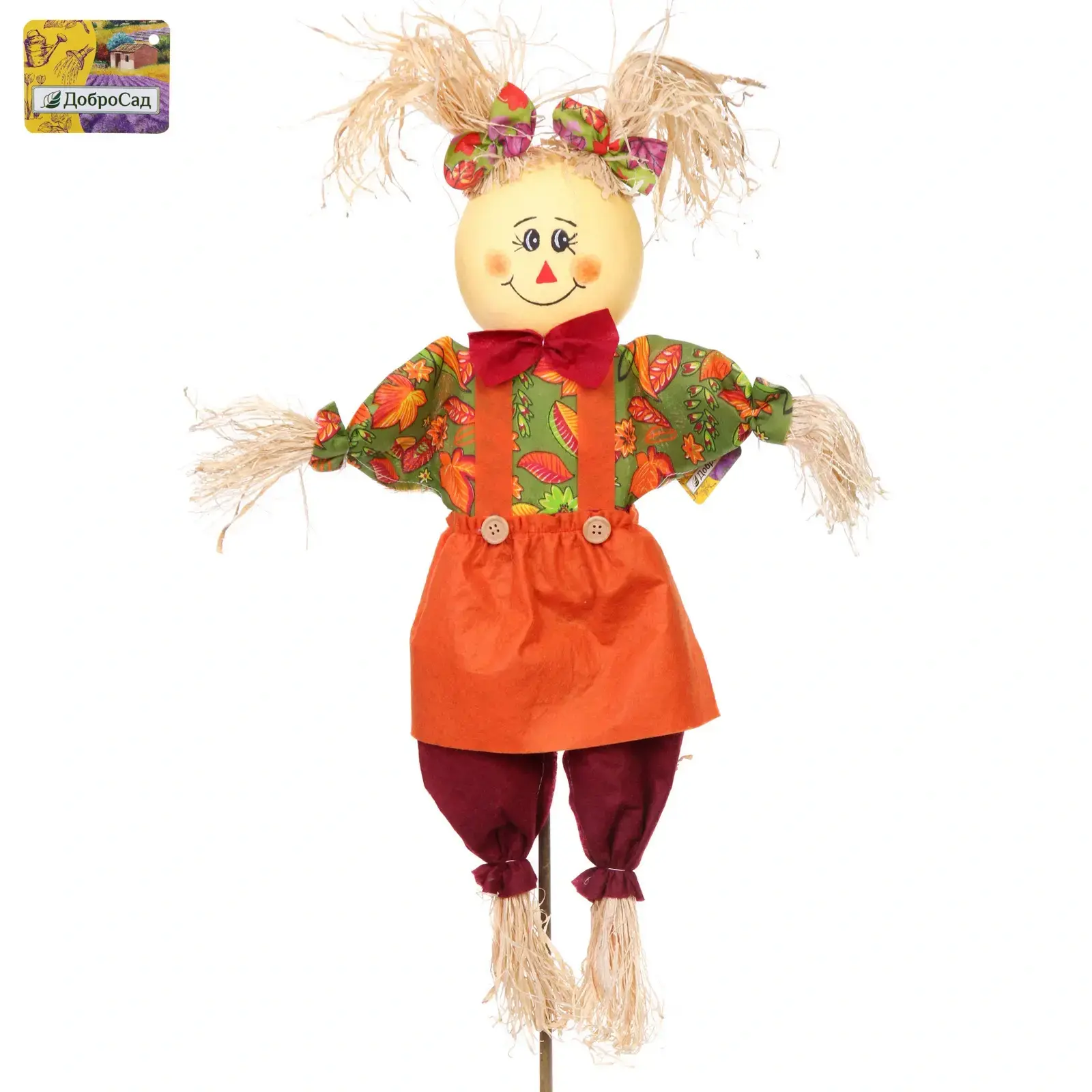 Размеры фигуры составляют 55 см в высоту, что делает ее заметной, но не слишком громоздкой. Используемые материалы — дерево, солома и текстиль, что обеспечивает легкость и простоту в уходе. «Пугало - Стеша» станет отличным выбором для тех, кто ценит качество и стиль в оформлении своего сада.