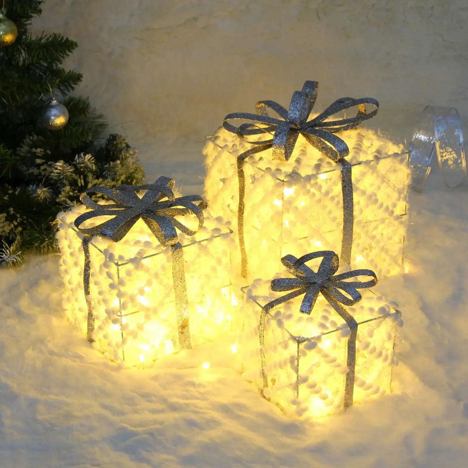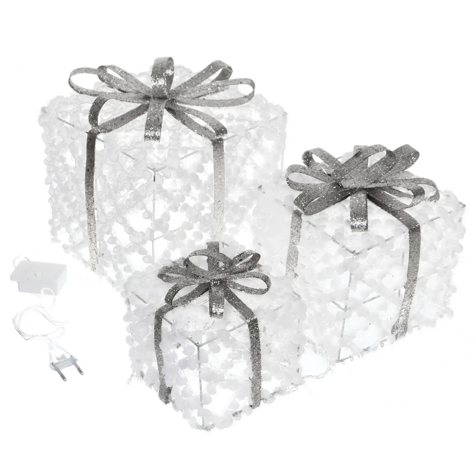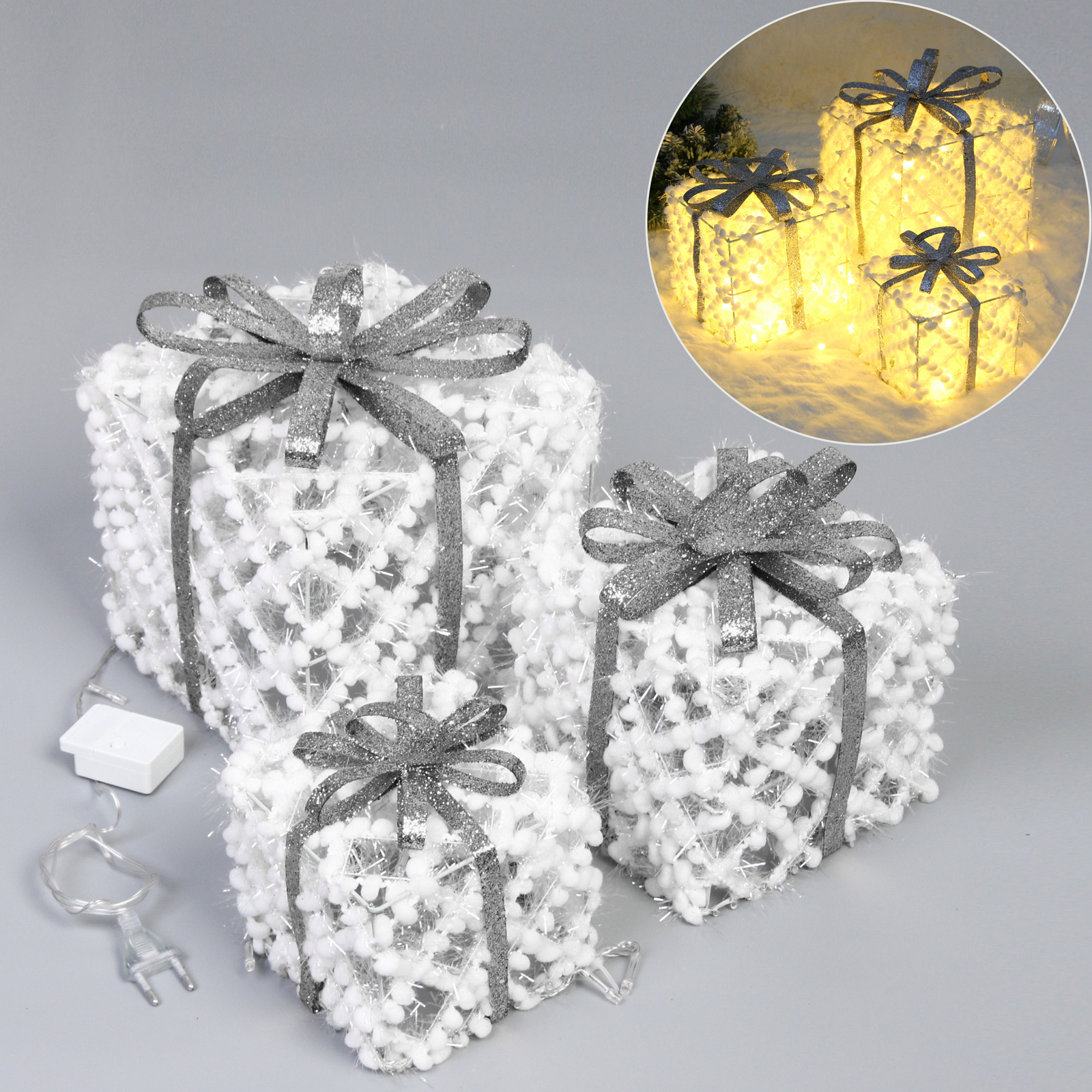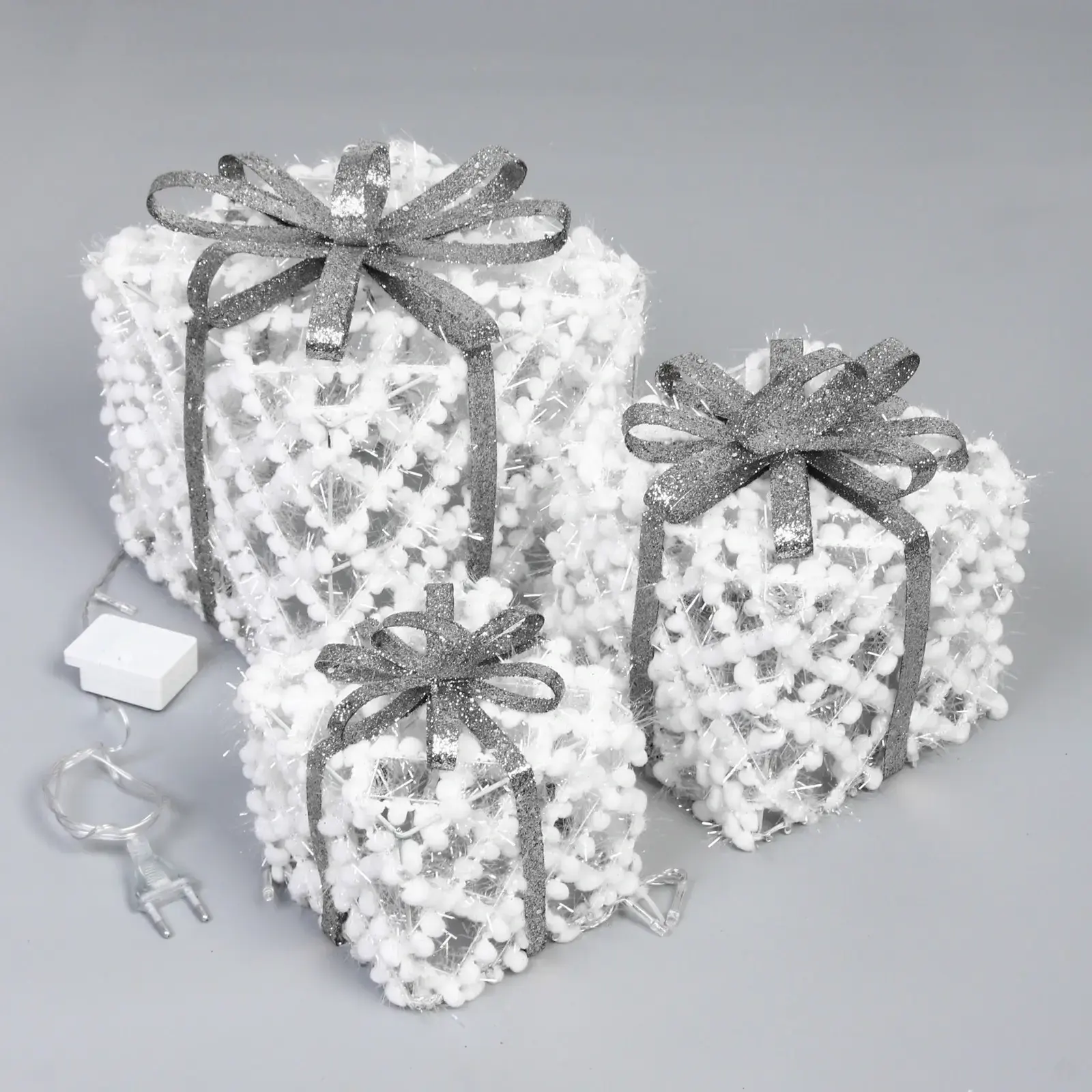 Набор светодиодных подарков 'Подарок от Санты', 3 шт, 12/15/19см, серебро, теплый белый свет