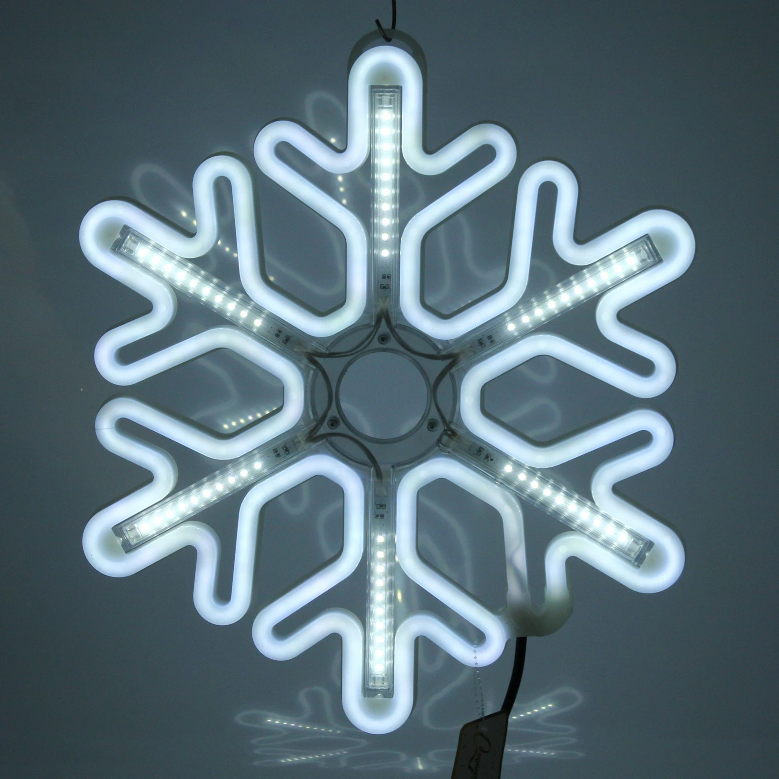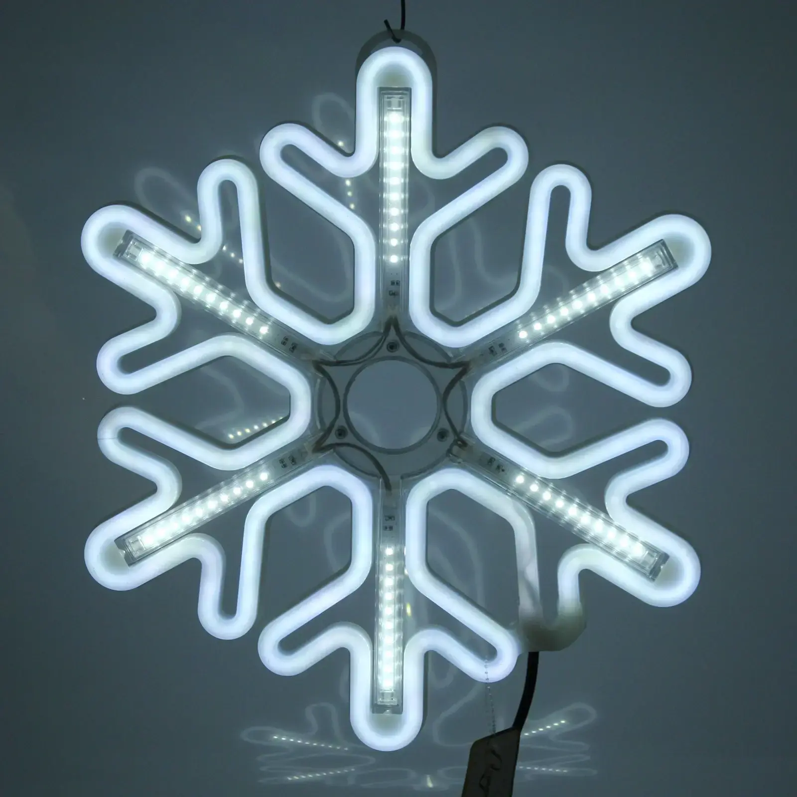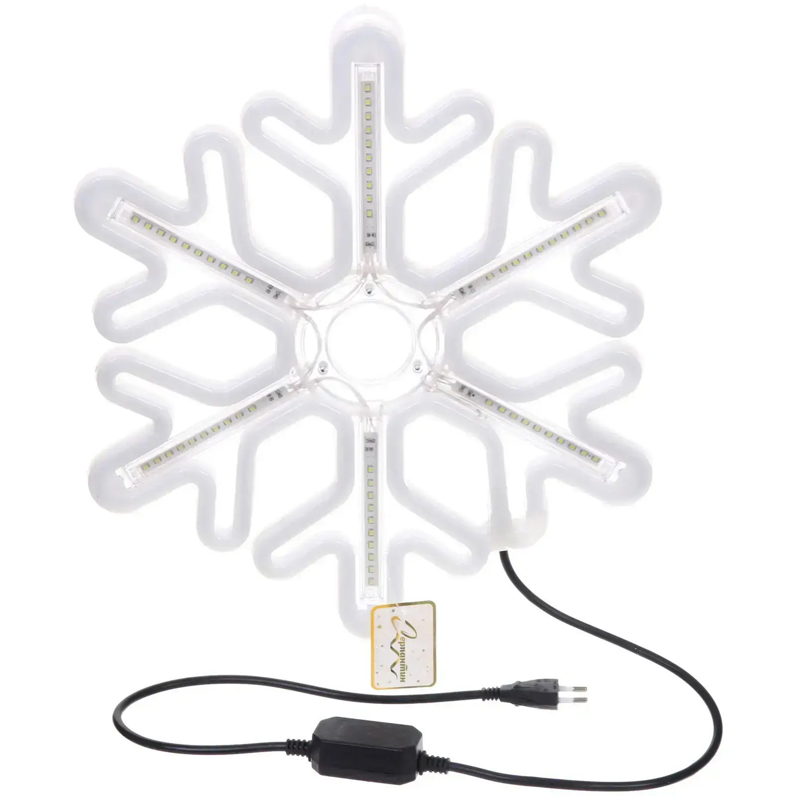 Светильник выполнен в форме снежинки и оснащён 480 светодиодами, которые создают эффект мерцания и переливания света. Он работает от сети 220V и имеет авторежим, что позволяет ему автоматически включаться и выключаться. Установить фигуру можно как внутри помещения, так и на улице, благодаря её устойчивой конструкции и качественным материалам.
