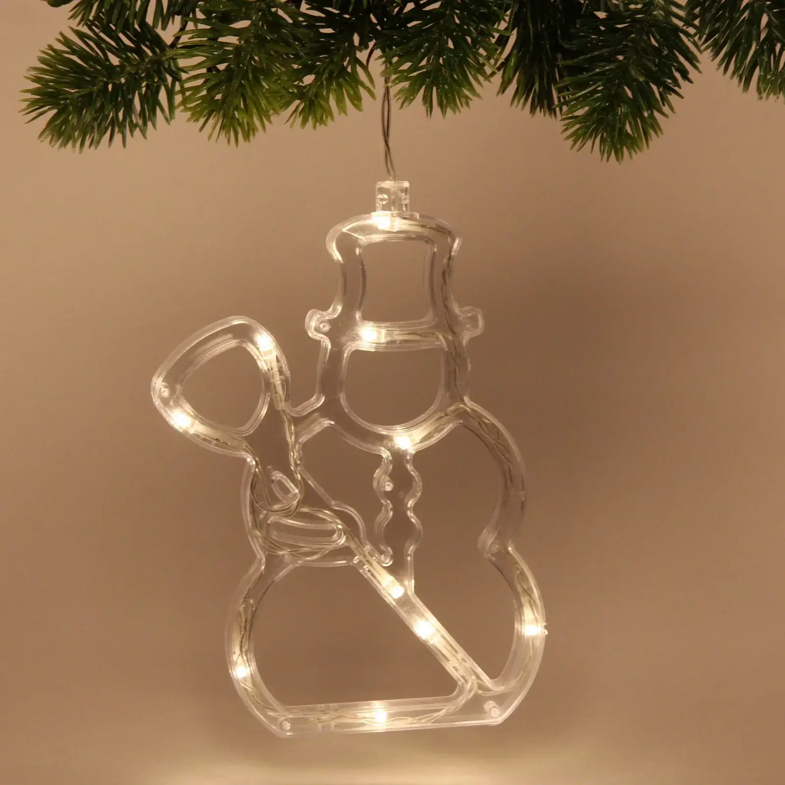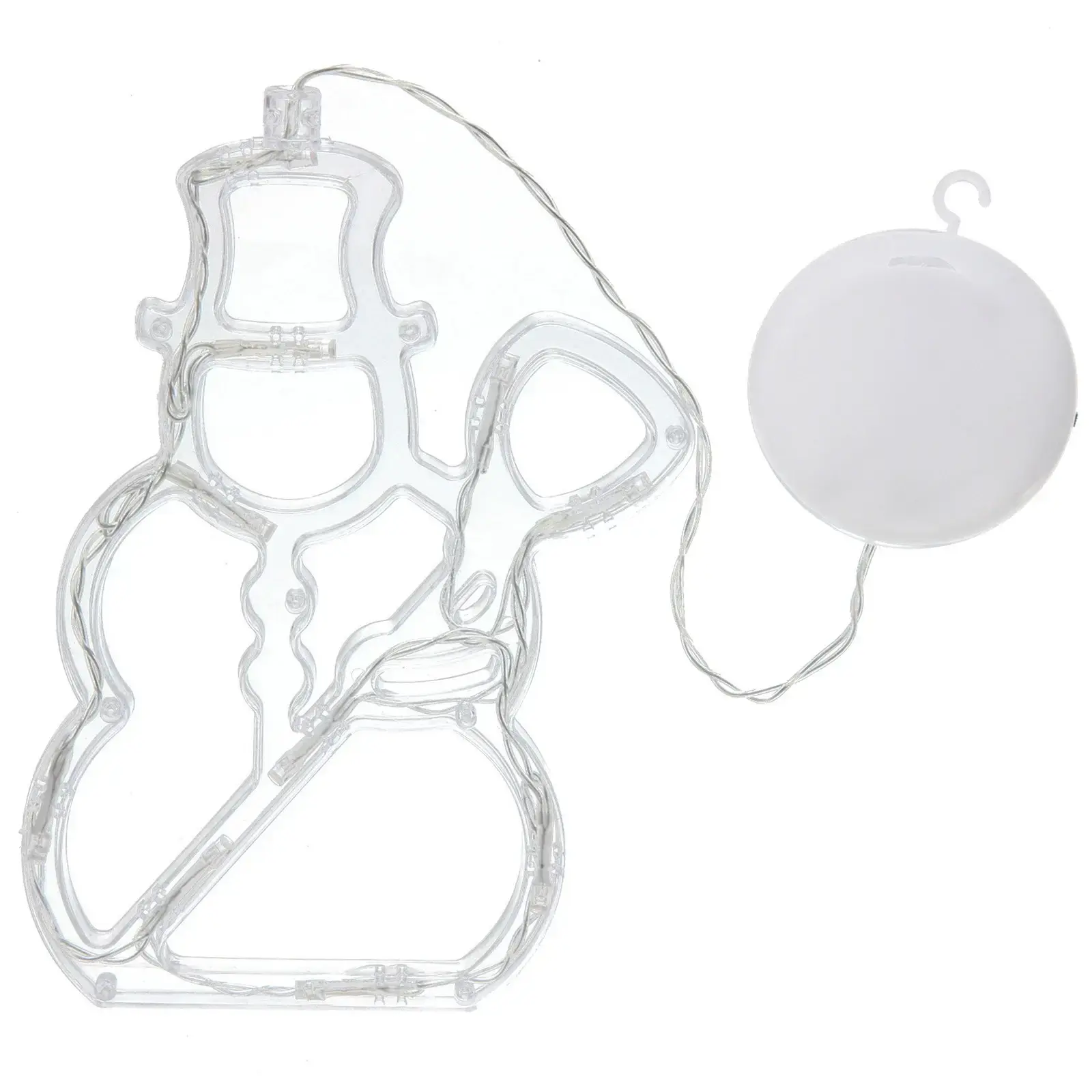 Фигура выполнена из прозрачного пластика и оснащена встроенной LED-подсветкой, что позволяет ей светиться в темноте. Она идеально подходит для украшения как интерьера, так и экстерьера. Вы можете разместить снеговика на столе, полке или повесить его на елку, создавая тем самым волшебную атмосферу. Это украшение станет отличным подарком для друзей и близких, а также прекрасным дополнением к вашему новогоднему декору.