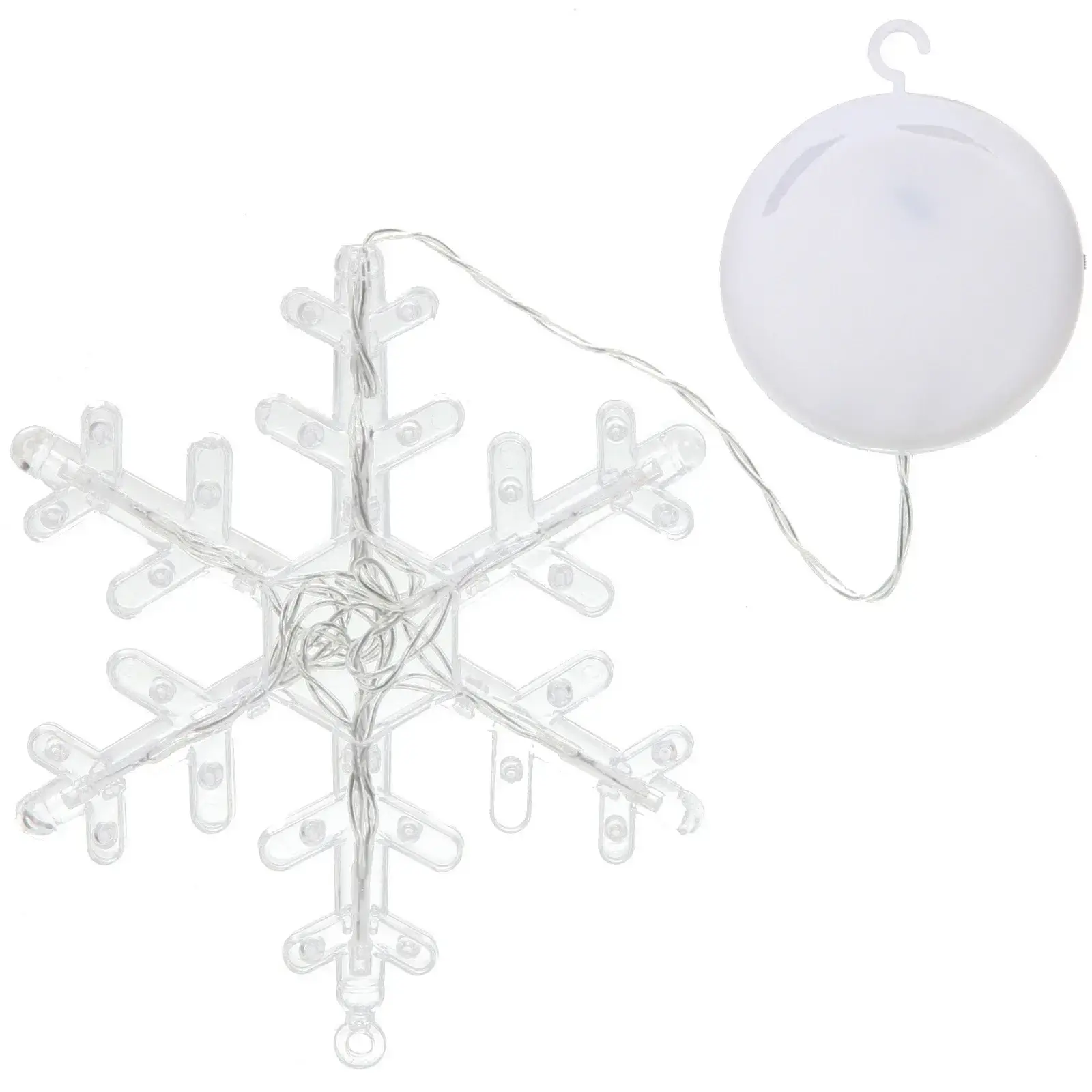 Светодиодная снежинка легко устанавливается в любом месте благодаря встроенной петле для подвешивания. Она идеально подходит для украшения елки, окон, стен или создания гирлянд. Используйте её для создания уютной атмосферы на новогодних вечеринках или семейных праздниках. Снежинка работает от трех батареек типа AAA, что делает её удобной в использовании и не требует подключения к электросети.