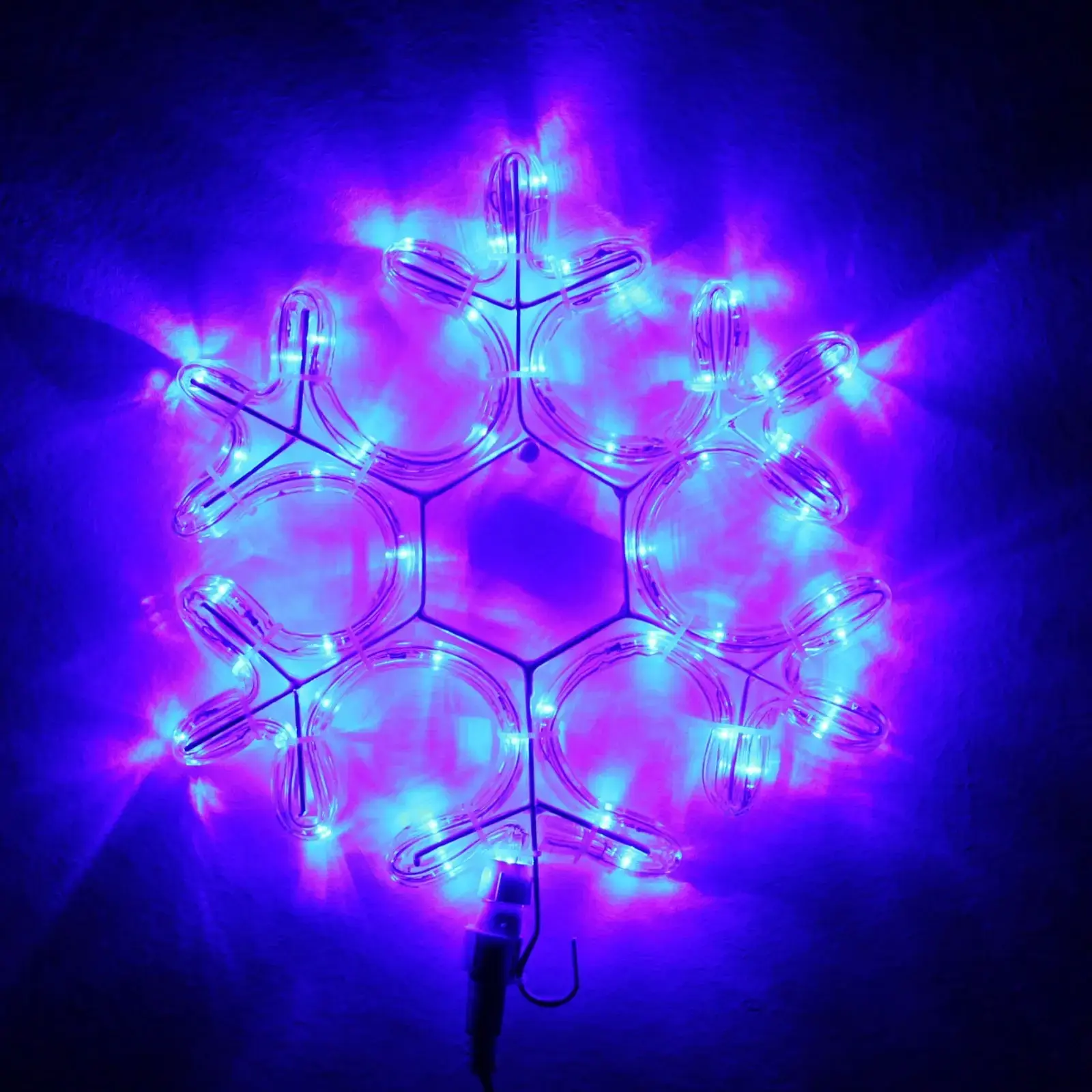 Фигура «Снежинка» легко подключается к электросети благодаря удобному проводу с вилкой. Она идеально подходит для украшения интерьеров, а также для создания праздничного настроения на улице. Используйте её для оформления окон, балконов или как часть новогоднего декора в вашем саду.