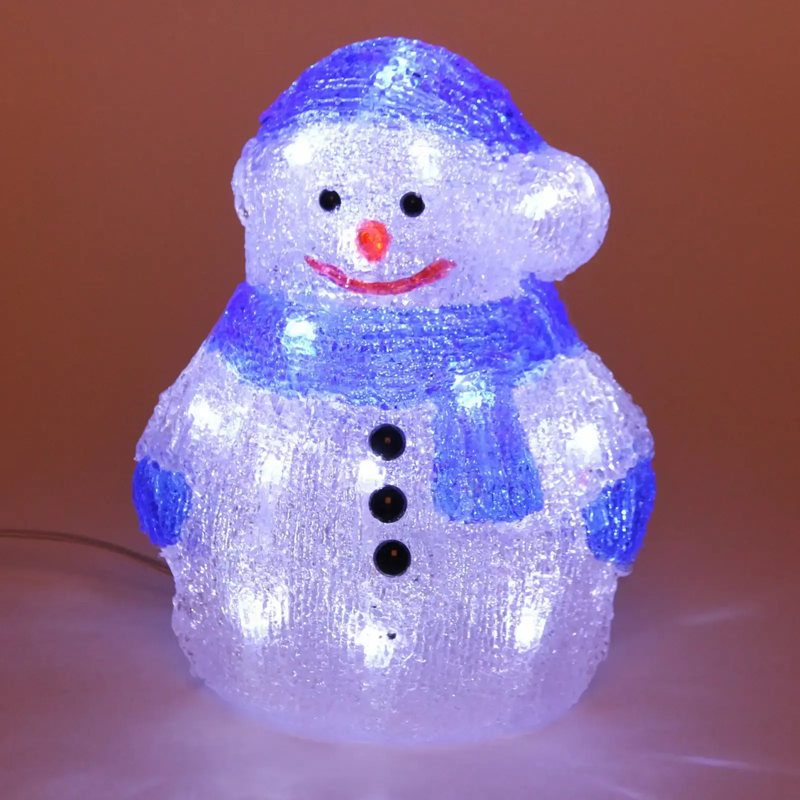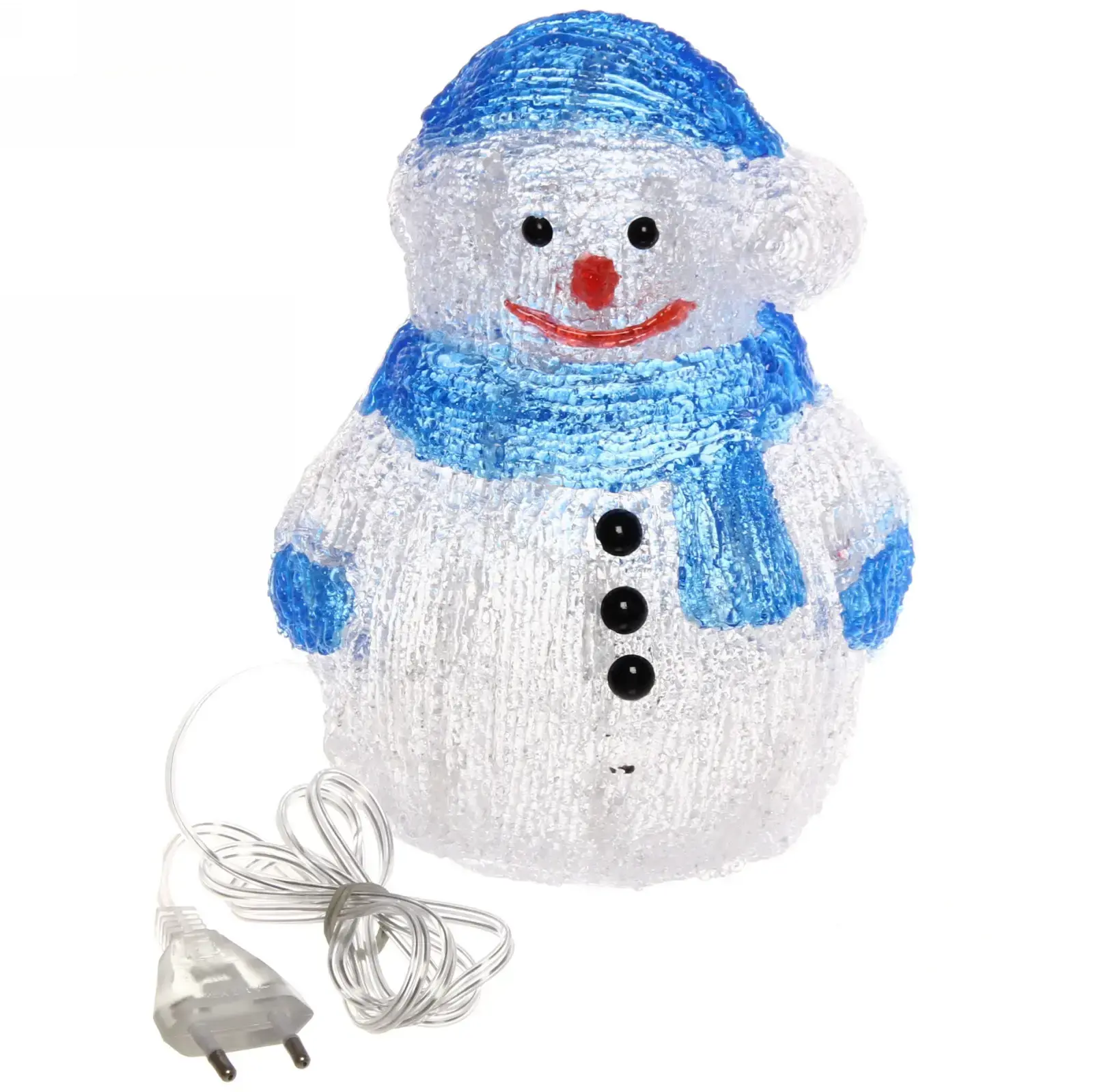 Размеры фигуры составляют 13х12х21 см, а количество светодиодов — 20. Цвет снеговика белый с голубыми деталями, красным носом и черными кнопками. Этот светильник станет отличным подарком для ваших близких и друзей, а также прекрасным дополнением к вашему новогоднему оформлению.