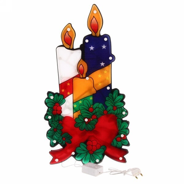 Эта фигура не только красива, но и практична. Светодиоды обеспечивают долговечность и экономию энергии, а яркие цвета свечей создают эффект свечения, который будет радовать вас и ваших близких. Декоративные элементы, такие как зелёные листья и красная лента, придают фигуре завершенный вид и делают ее еще более привлекательной.