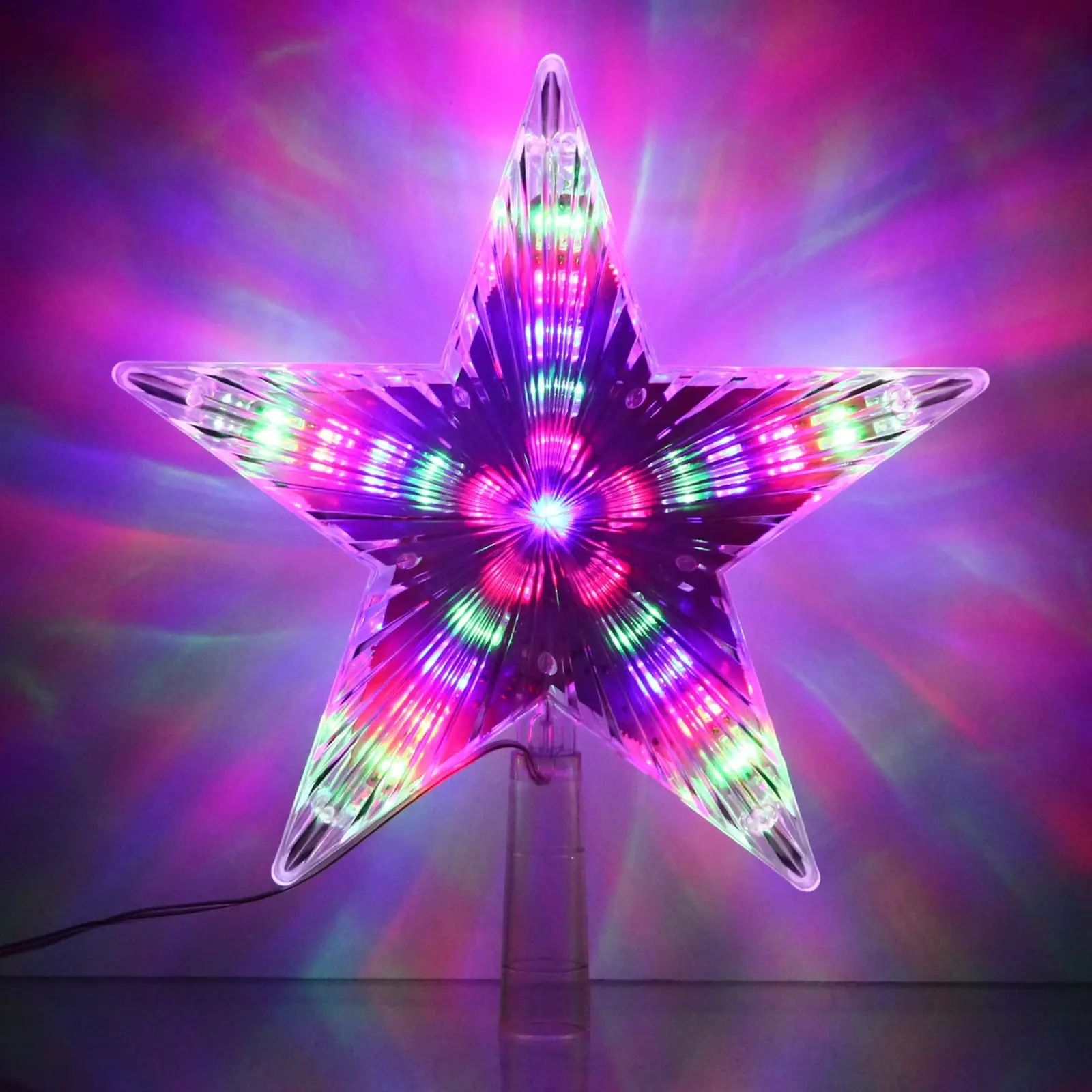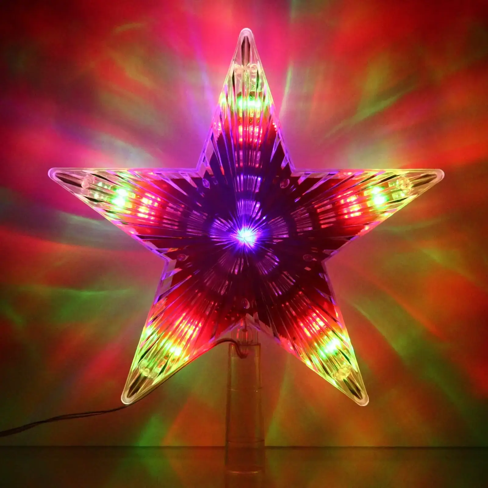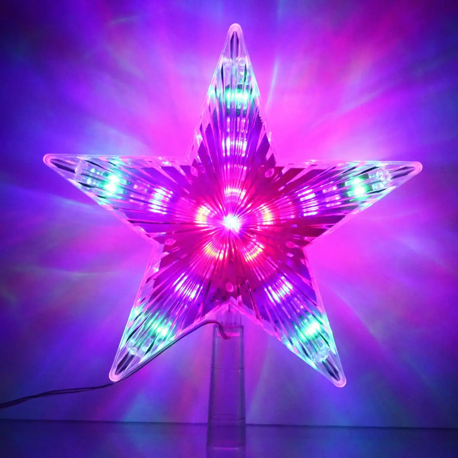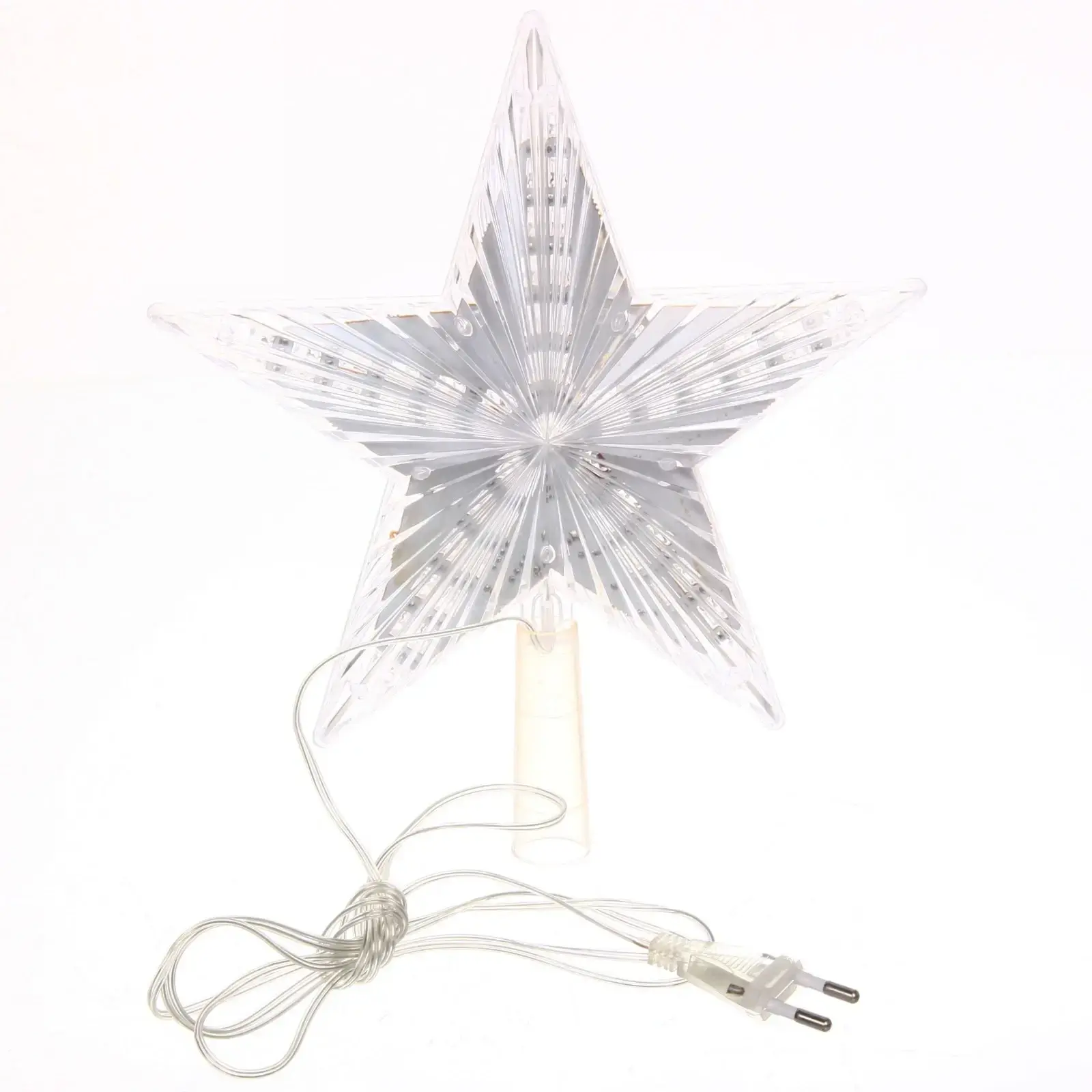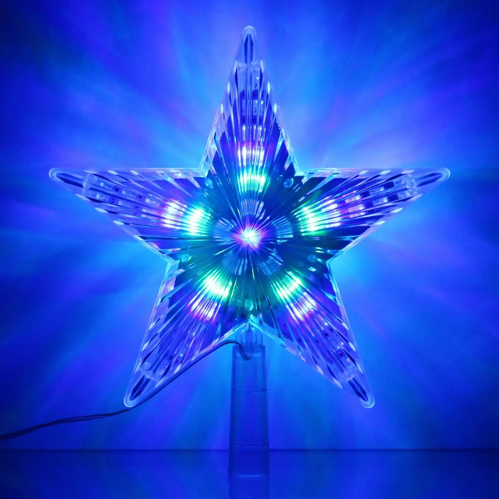 Эта звезда предназначена для установки на верхушку ёлки, но также может использоваться как самостоятельный элемент декора. Длина шнура до розетки составляет 2 метра, что позволяет удобно разместить её в любом уголке вашего дома. Она идеально подходит для семейных праздников, корпоративов и других торжеств.