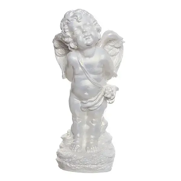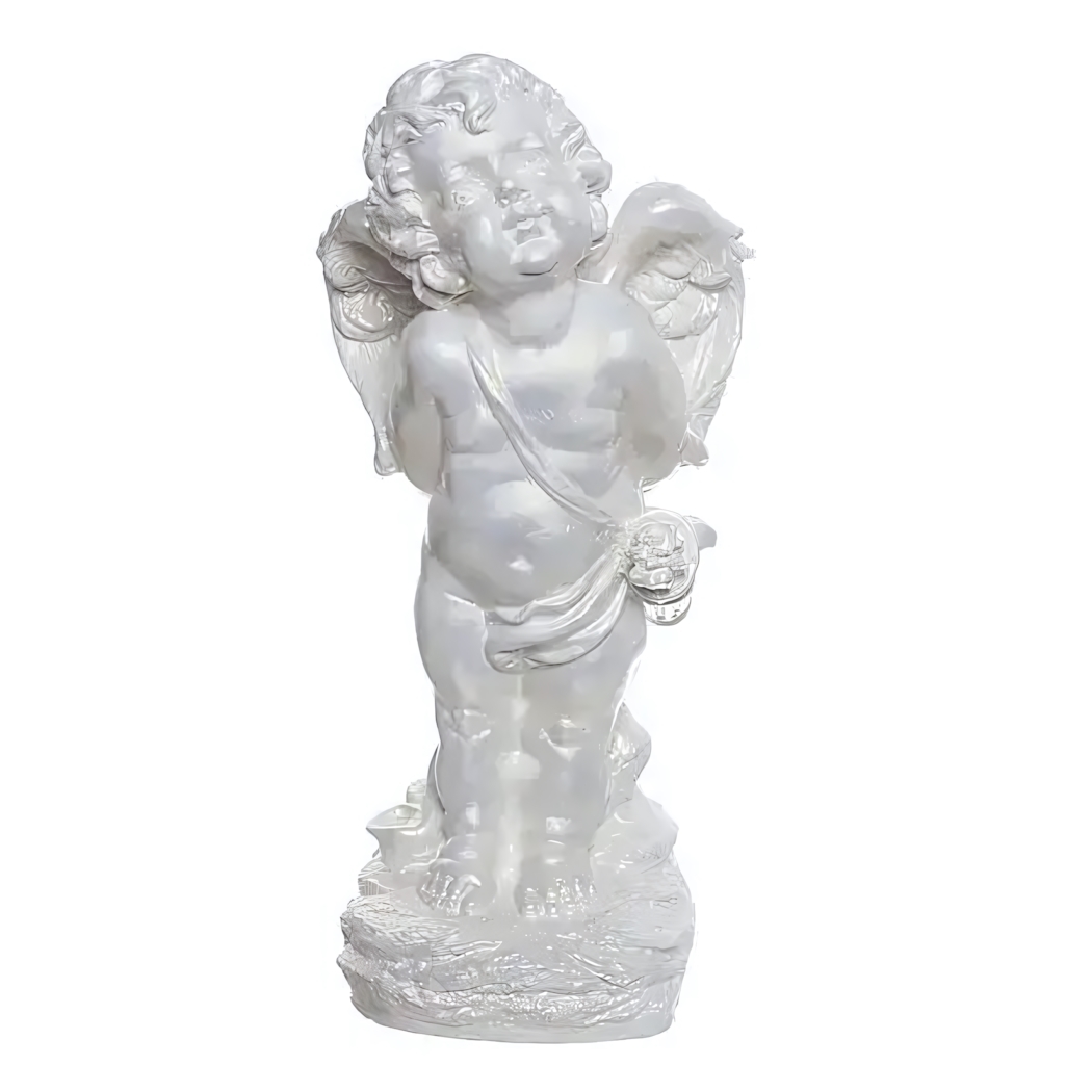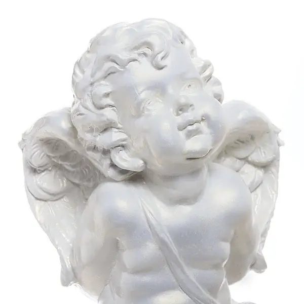 Фигурка изображает младенца-ангела с крыльями, оформленного в классическом стиле, что делает ее универсальным и актуальным элементом любой домашней коллекции. Поверхность с перламутровым блеском создает эффект нежности и легкости, подчеркивая утонченность изделия.