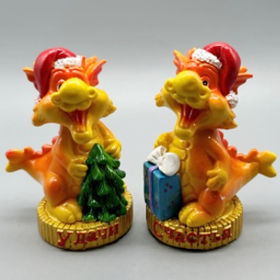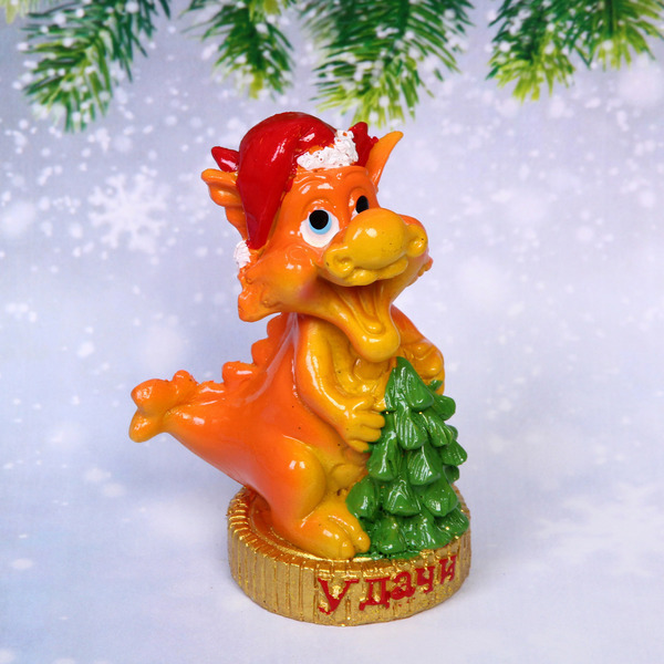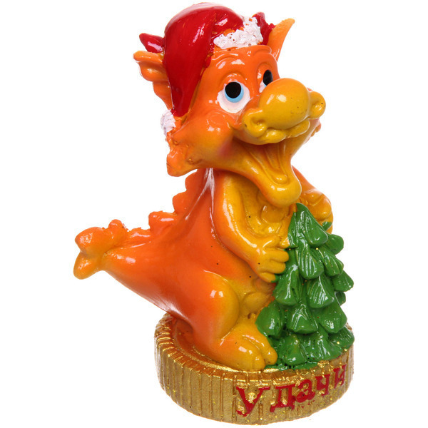 Эта фигурка станет не только оригинальным украшением вашего дома, но и источником положительных эмоций. Яркий оранжевый дракон с красной шапкой и зеленой елочкой в руках привнесет атмосферу праздника и радости в любое пространство. Он идеально подходит для новогоднего декора, а также станет замечательным подарком для близких и друзей.