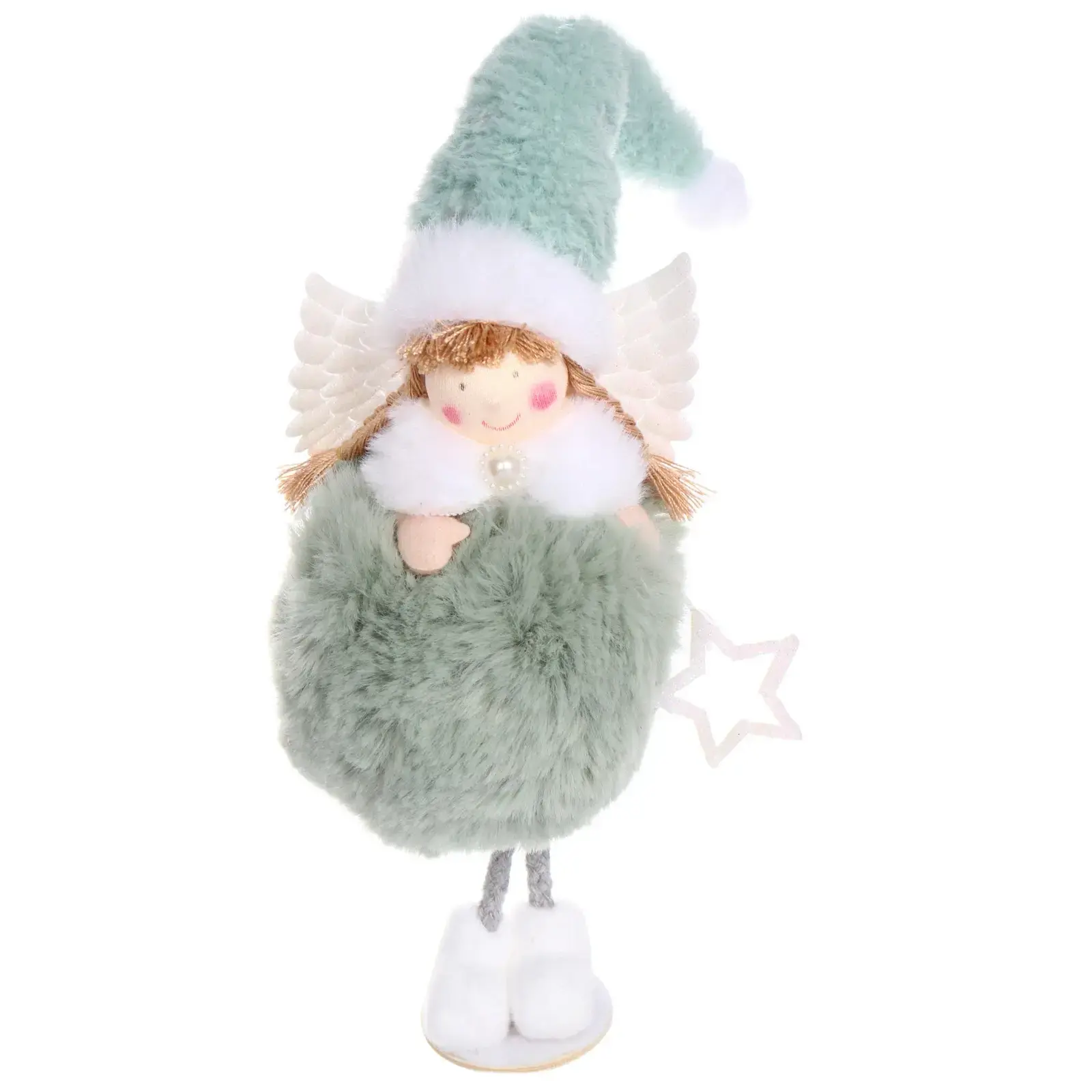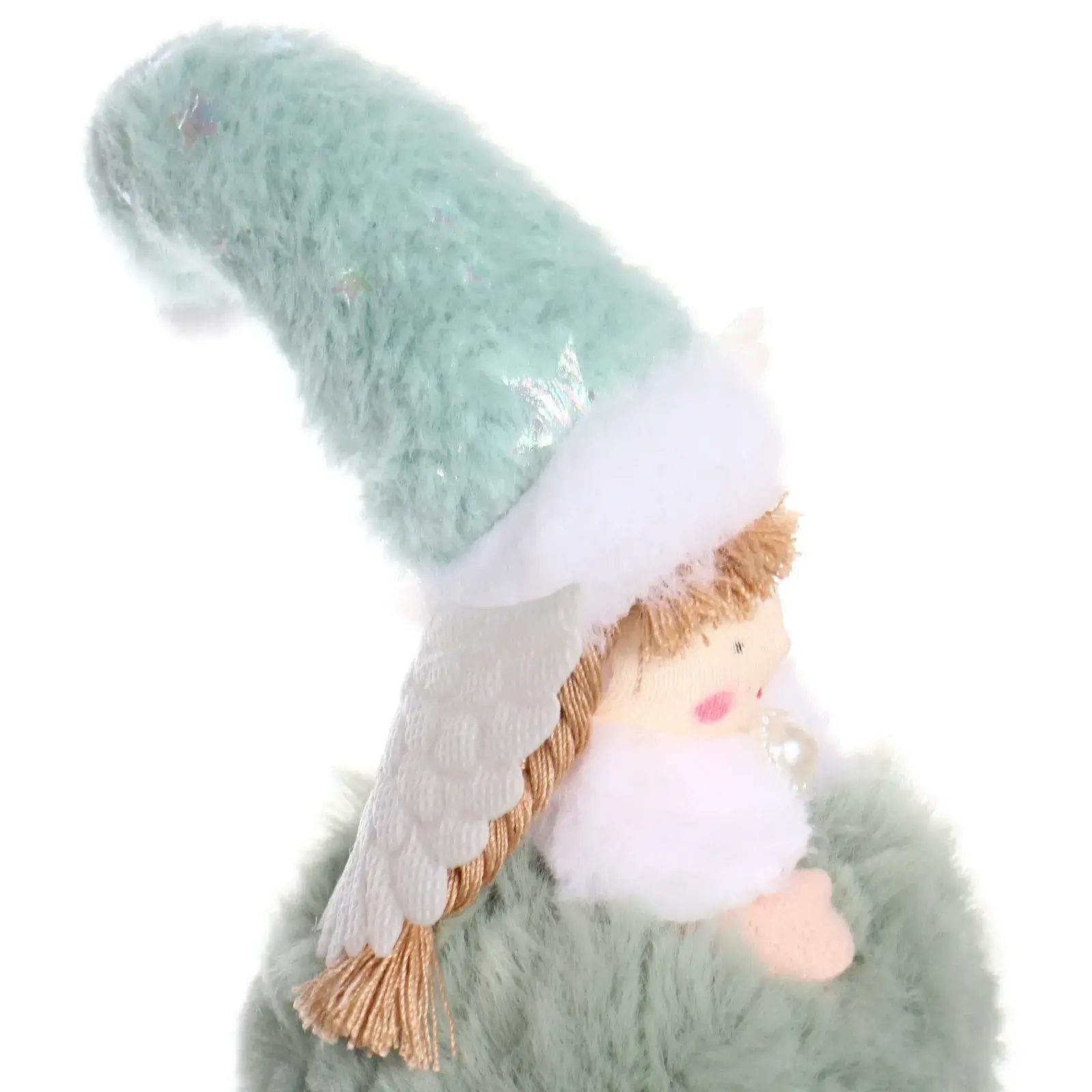 Размер фигурки составляет 23 см, что делает ее компактной и удобной для размещения в любом уголке вашего дома. Основные материалы — пластик и текстиль, что обеспечивает долговечность и легкость в уходе. Фигурка представлена в светло-зеленом цвете, что идеально впишется в зимнюю или рождественскую тематику.