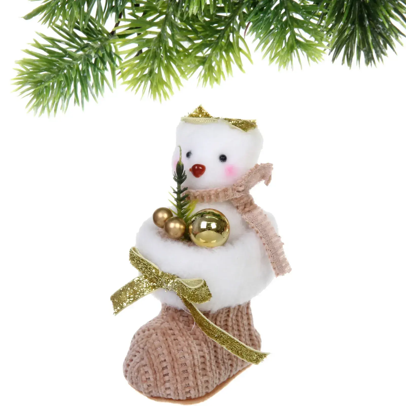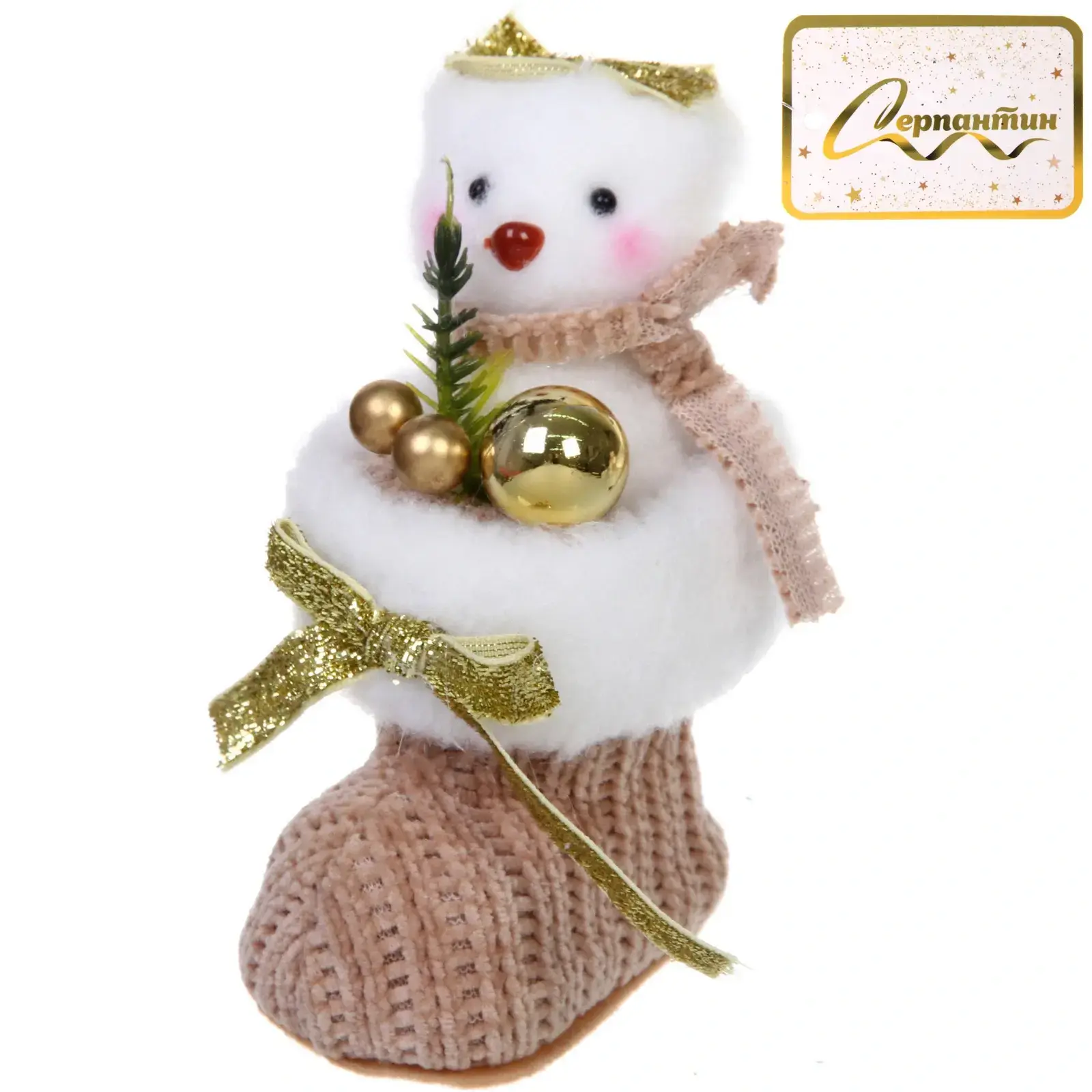 Фигурка выполнена в бежевом цвете, что делает ее универсальной для любого интерьера. Она украшена золотистой лентой и декоративными элементами, что придает ей особый шарм. Размеры фигурки составляют 12 см, что делает ее компактной и удобной для размещения. Не упустите возможность добавить этот замечательный элемент в ваш дом и создать незабываемую атмосферу праздника!