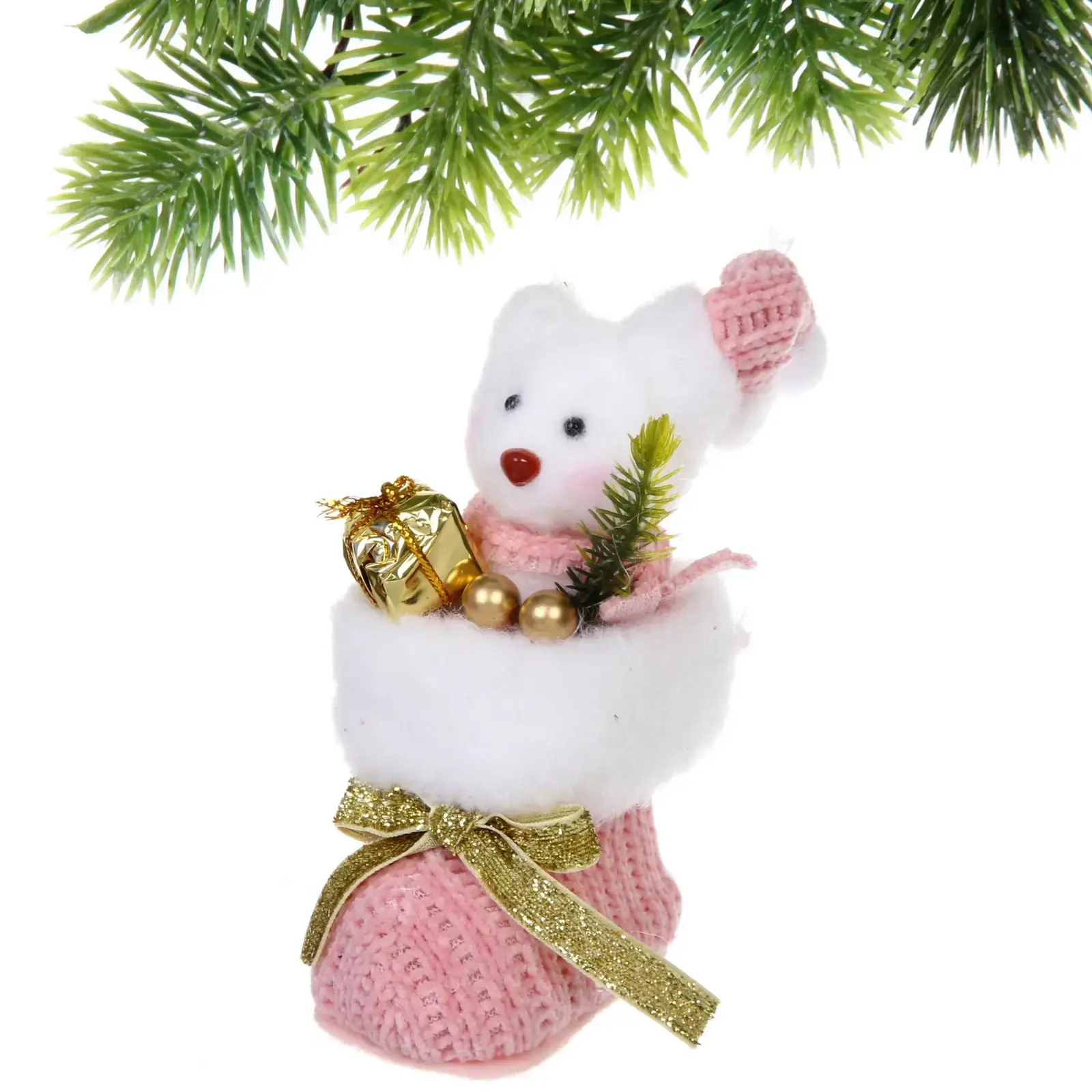 Почему стоит выбрать именно эту фигурку? Во-первых, она выполнена из качественных материалов: пластика и текстиля, что обеспечивает долговечность и практичность. Во-вторых, милый медвежонок с розовыми щеками и шарфом добавляет игривости и тепла в ваш интерьер. Внутри носка находятся декоративные элементы, такие как золотая упаковка подарка и веточка зелени, что создает праздничное настроение.