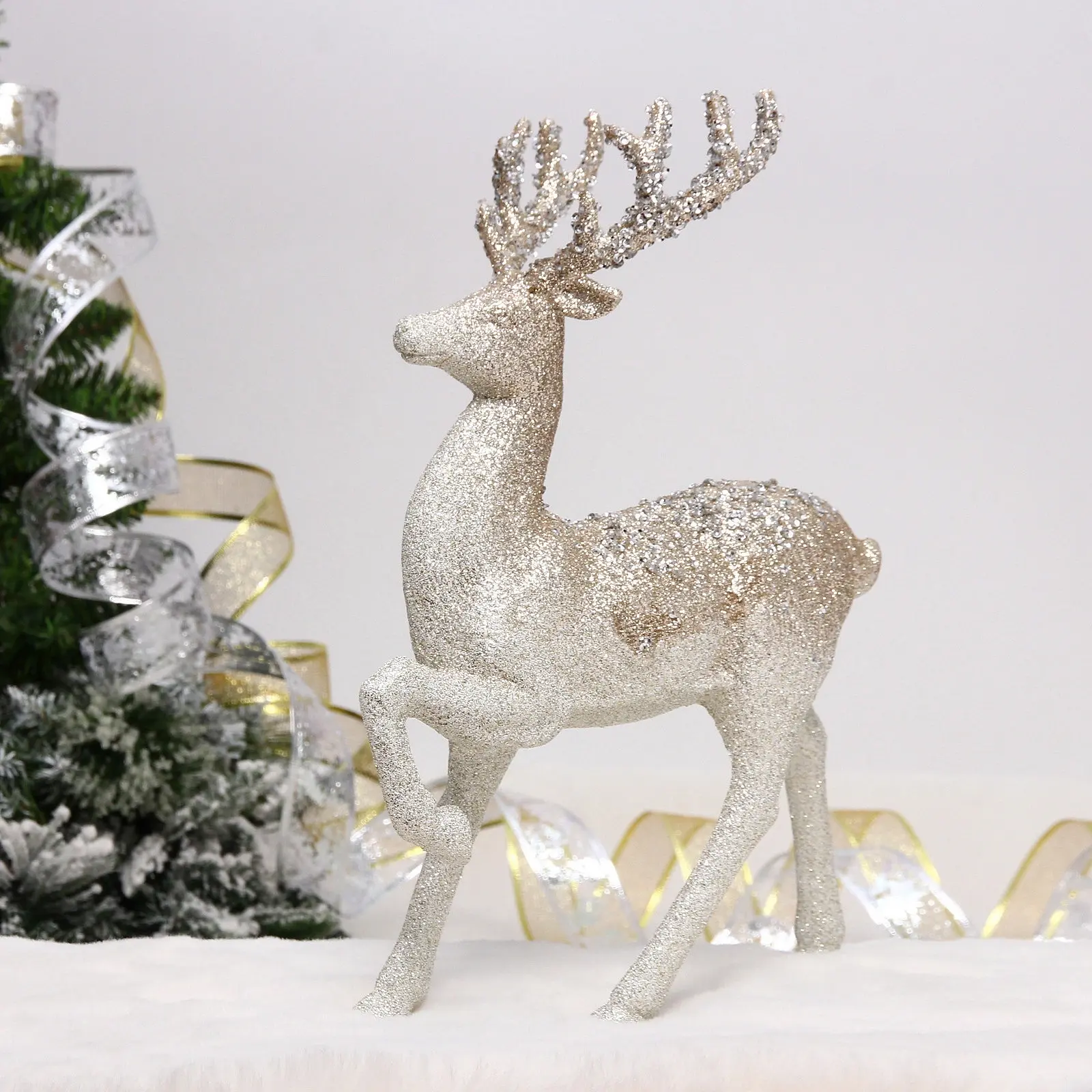 Фигурка новогодняя «Благородный олень» 21x8x31 см, белый/шампань, праздничное украшение для дому