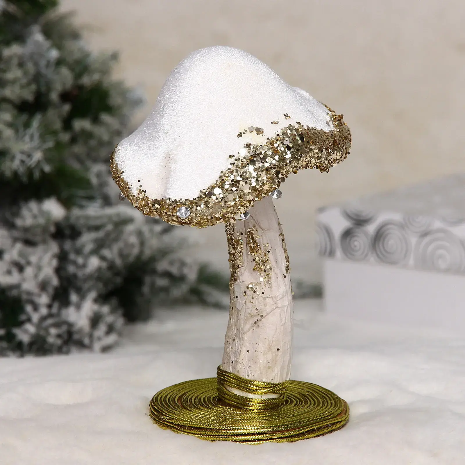 Новогодняя фигурка «Блестящий грибочек» станет изысканным акцентом в украшении вашего дома к праздникам. Благодаря сочетанию белоснежного цвета и золотистых блесток, она создает атмосферу уюта и зимней сказки.