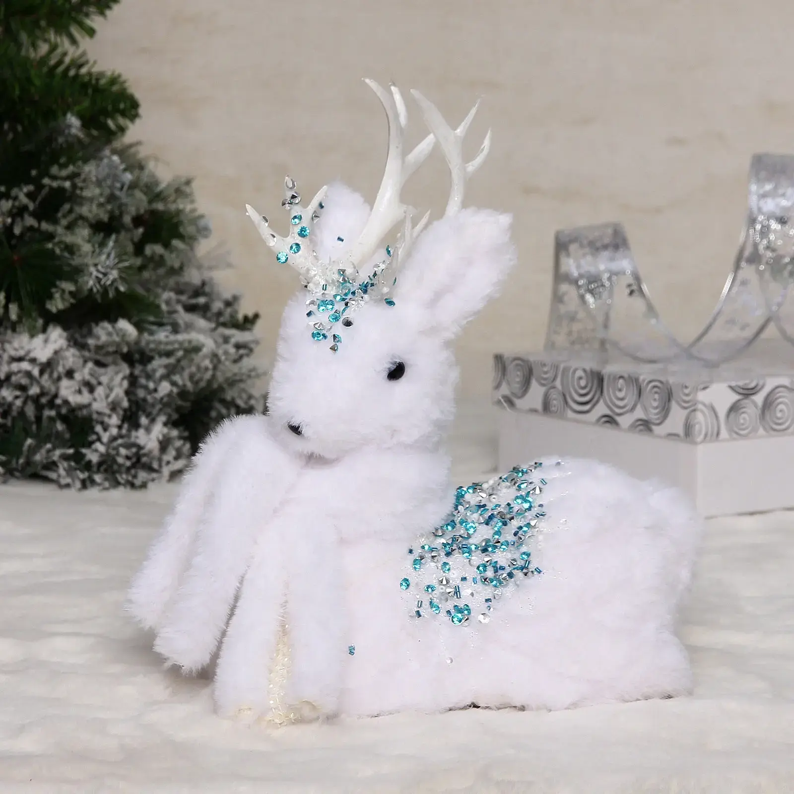 Фигурка новогодняя «Блестящий оленёнок», 23*13*26 см, белая, с декором из страз