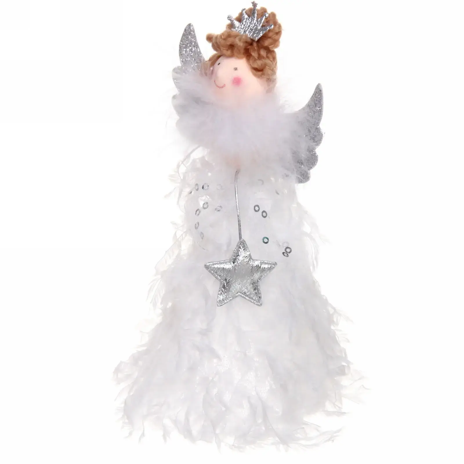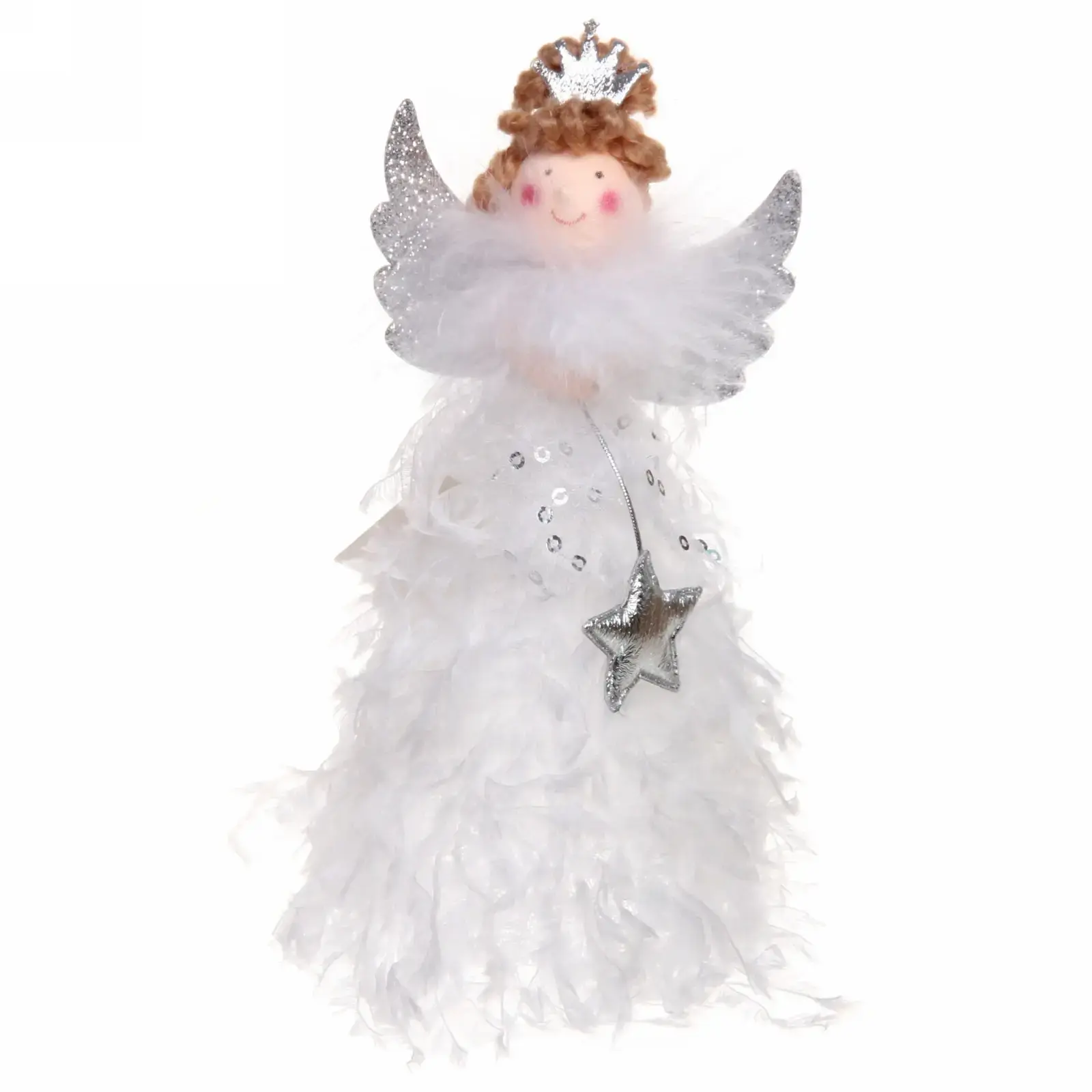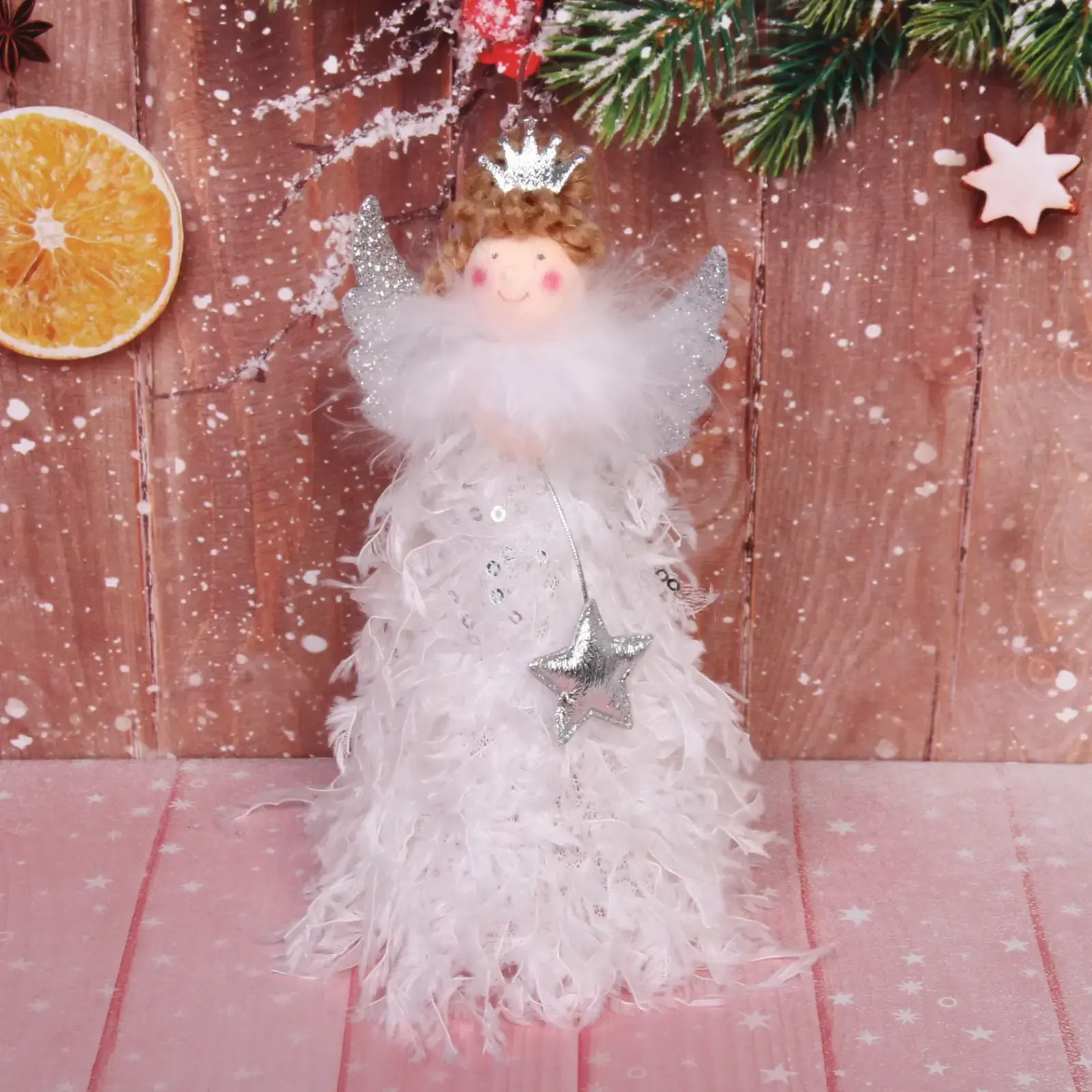 Создайте атмосферу праздника с фигуркой новогодней «Фея любви». Эта изящная фигурка высотой 16 см выполнена в белом цвете и украшена перьями, что придаёт ей особую легкость и воздушность. Улыбающееся лицо ангела с румяными щеками и корона из серебристого материала делают её идеальным элементом декора для вашего дома в новогодние праздники.