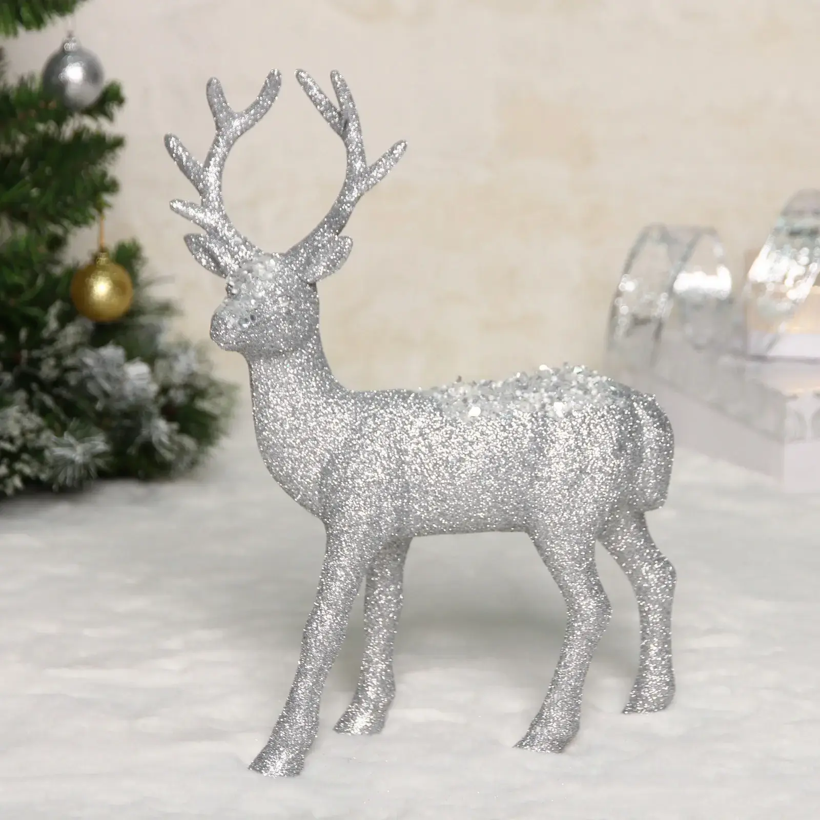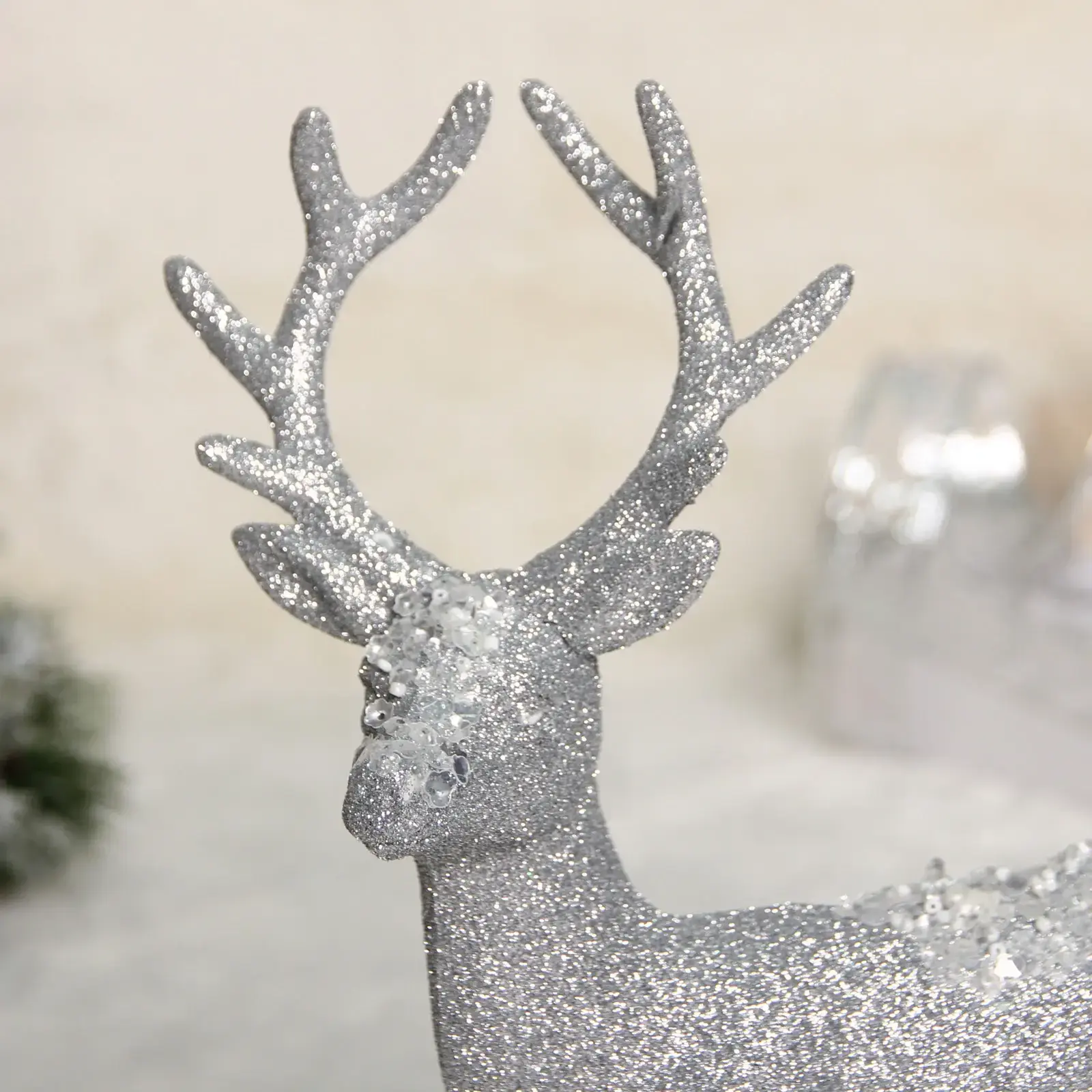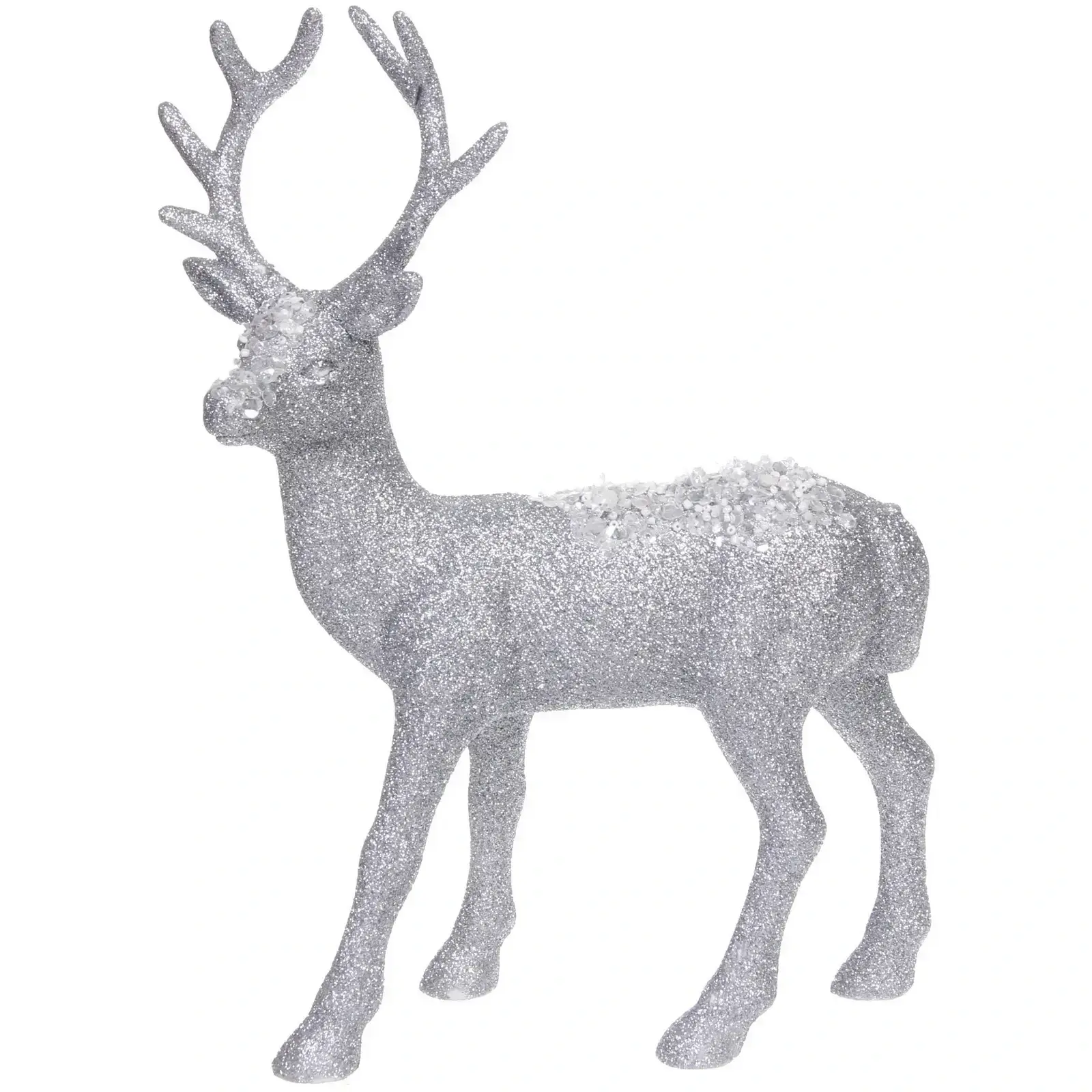 Новогодняя фигурка 'Лесной олень' станет изысканным украшением вашего дома и подарит незабываемое ощущение зимней сказки. Благодаря стильному серебристому цвету и мерцающим блесткам, она органично дополнит любую праздничную композицию.