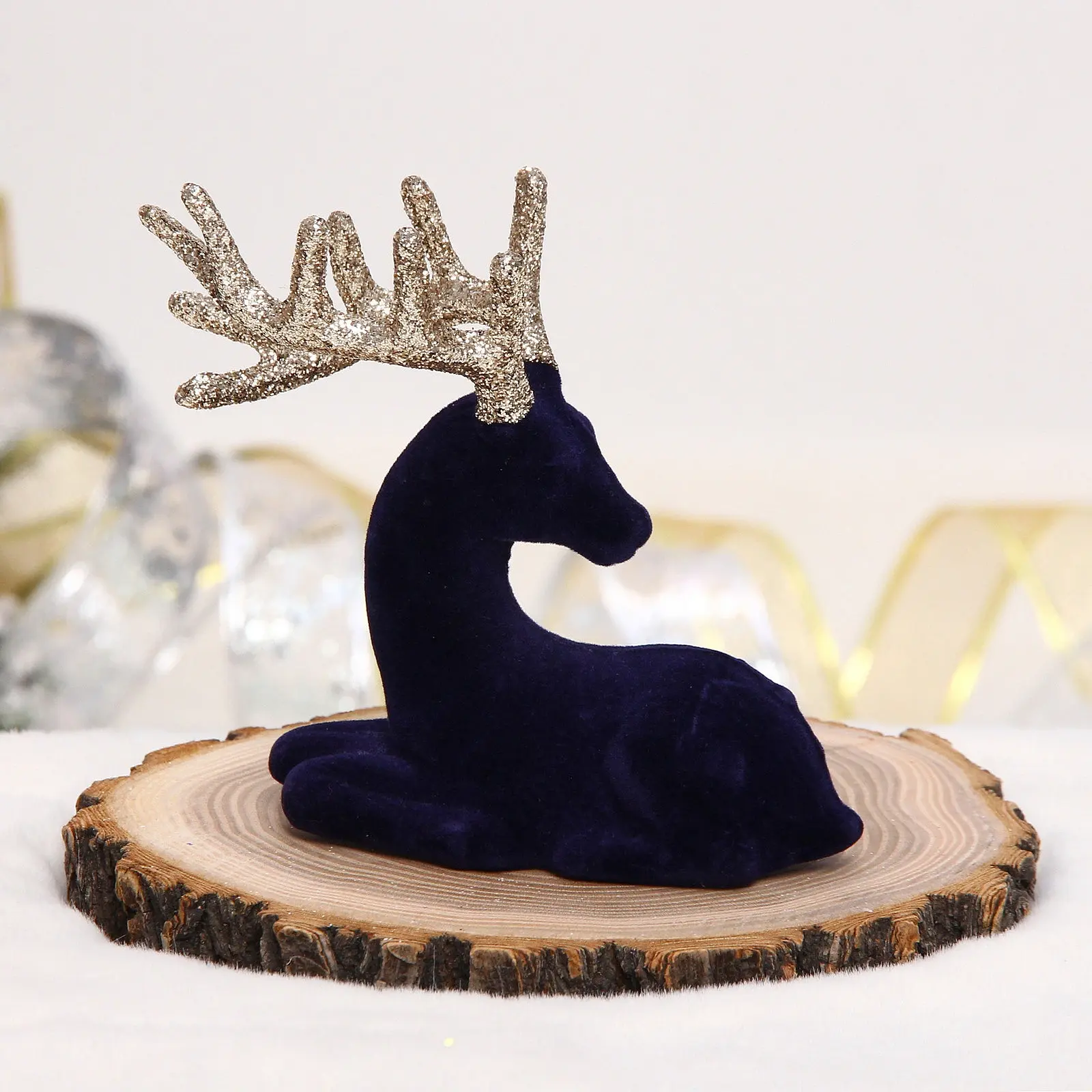 Фигурка подходит для украшения камина, праздничного стола, витрины или пространства под ёлкой. Идеальна как для домашнего интерьера, так и для оформления офиса или магазина. Лежащая поза оленя придаёт композиции динамику, а деревянное основание со спилом и корой создаёт естественный, природный акцент.