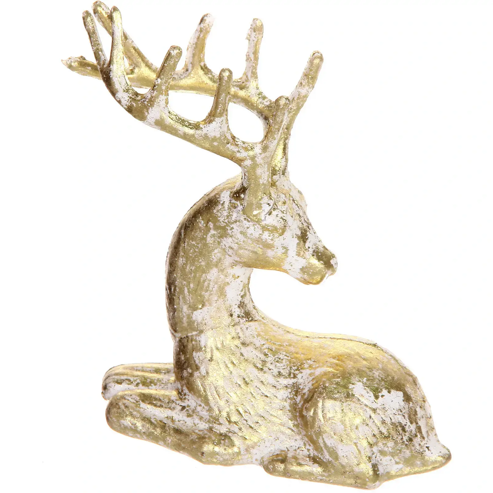 Добавьте изысканности вашему праздничному интерьеру с этой декоративной фигуркой оленя, выполненной в золото-белой гамме с эффектом легкой состаренности. Блестящее золотое покрытие и белые акценты создают атмосферу тепла и уюта, а деревянная подставка в виде спила с ярко выраженными кольцами добавляет натурального шарма.