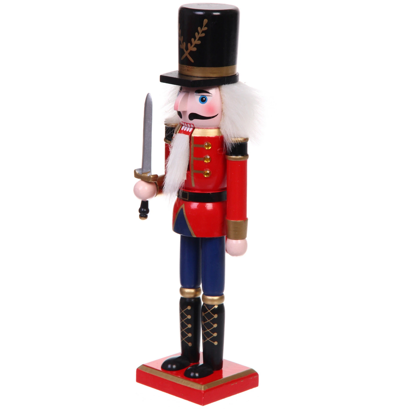 Фигурка «Щелкунчик» новогодняя с саблей, дерево, красный/синий/золотой, 30,6 см