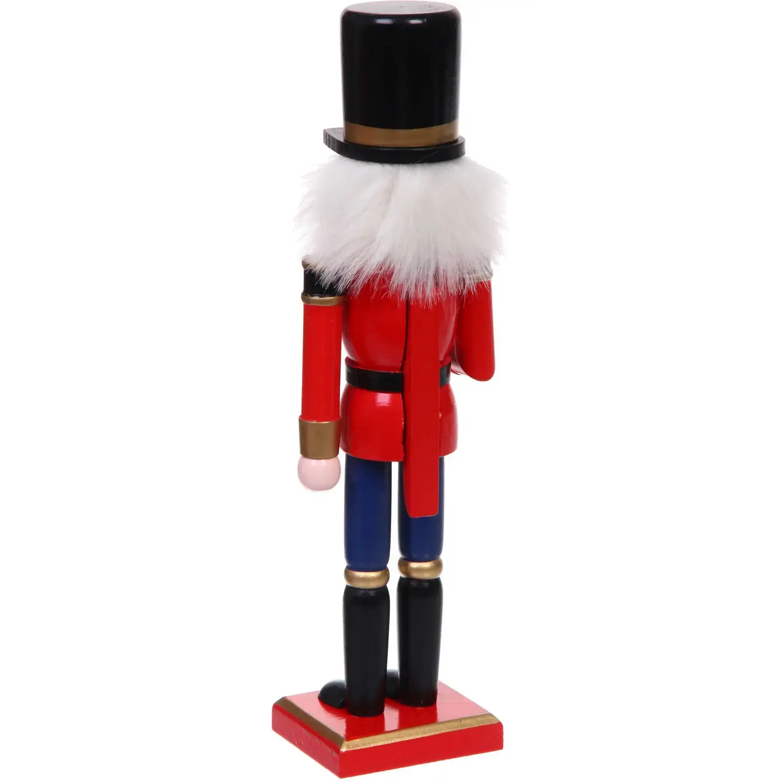 Высота изделия 30,6 см позволяет рассмотреть все элементы дизайна: искусную роспись мундира, реалистичную текстуру бороды, металлическую саблю в руке. Красный базис гармонично сочетается с синими элементами костюма и золотым декором.