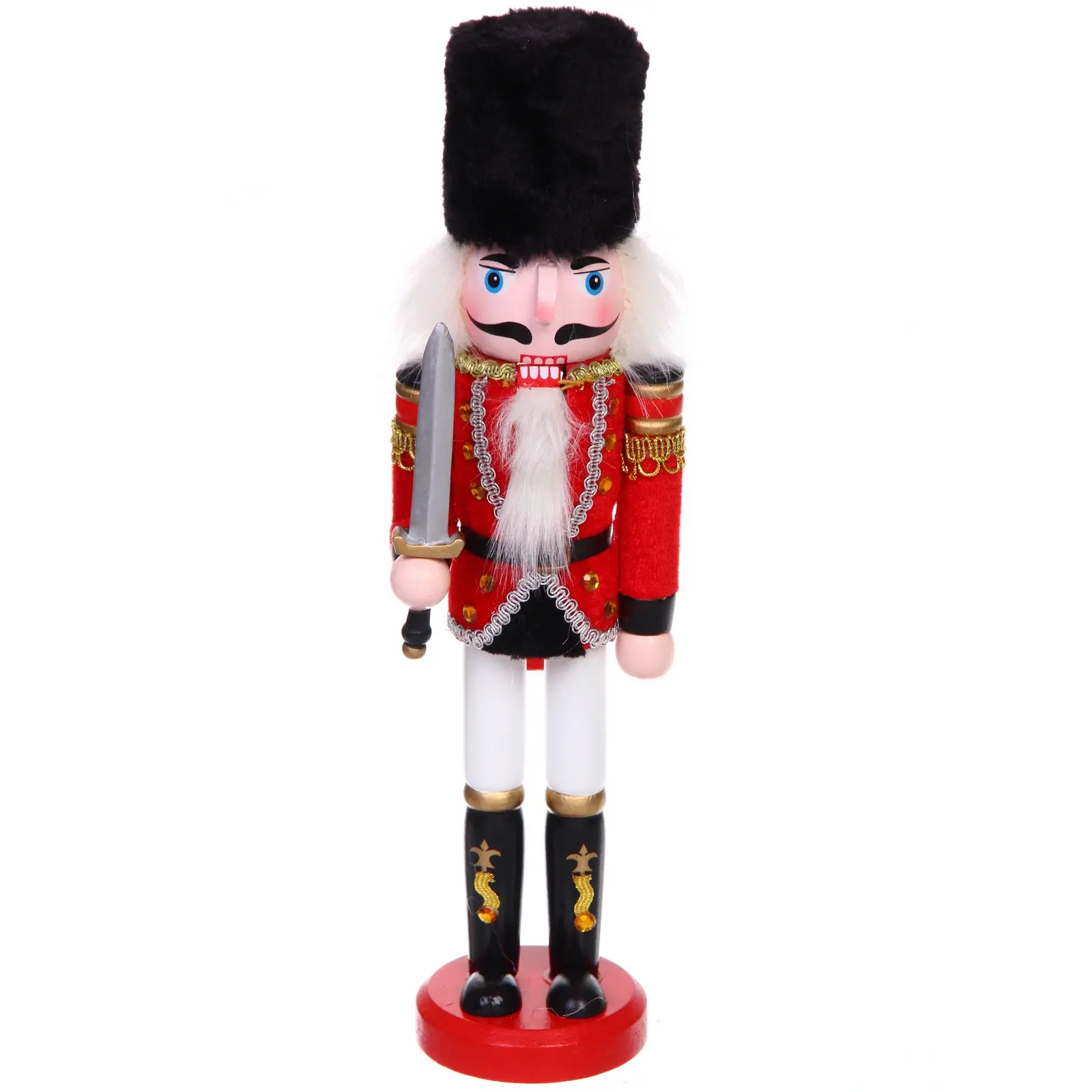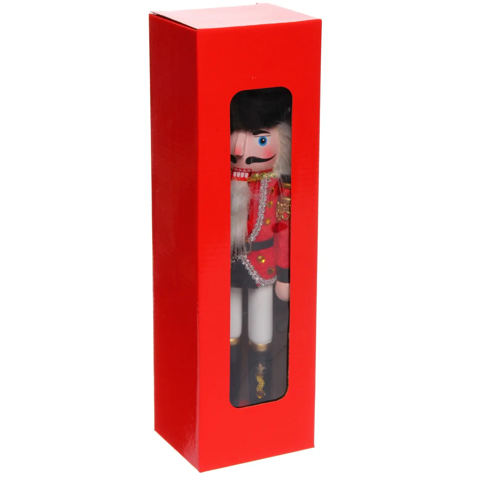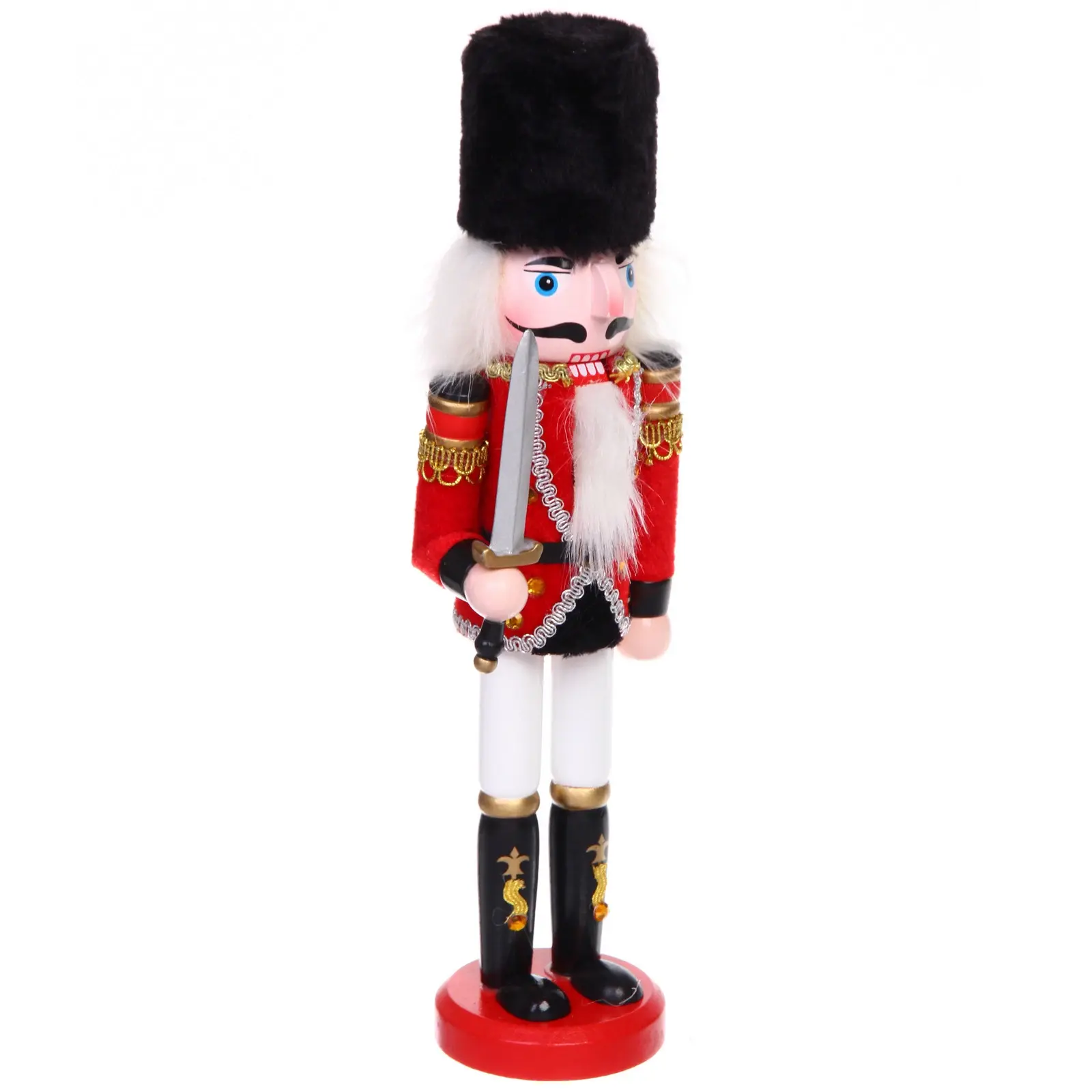 Почему стоит выбрать именно эту новогоднюю фигурку? Во-первых, качественные материалы и уникальный дизайн — фигурка выполнена в традиционных красных, черных и золотых цветах, что придаёт ей стильный вид. Высокое внимание к деталям, включая меховой головной убор и декор в золотистом оттенке, делают её настоящим произведением искусства. Также этот щелкунчик будет отличным подарком для друзей и близких!