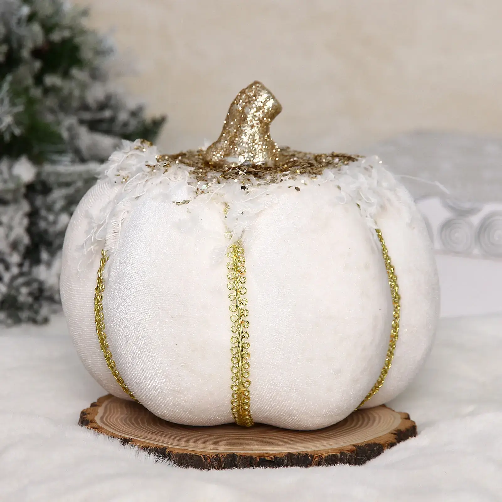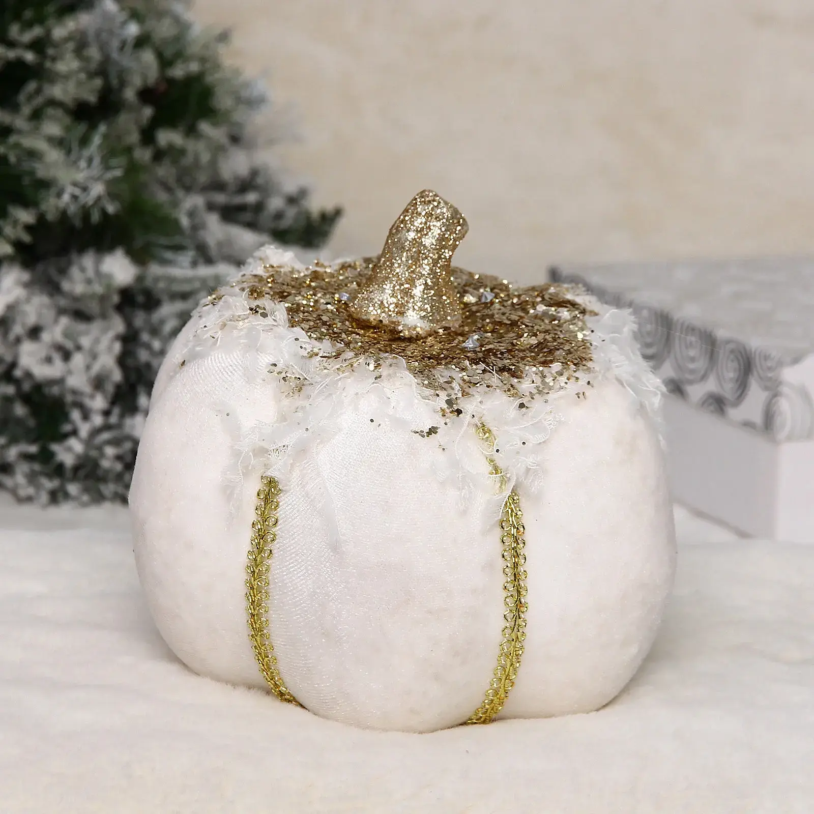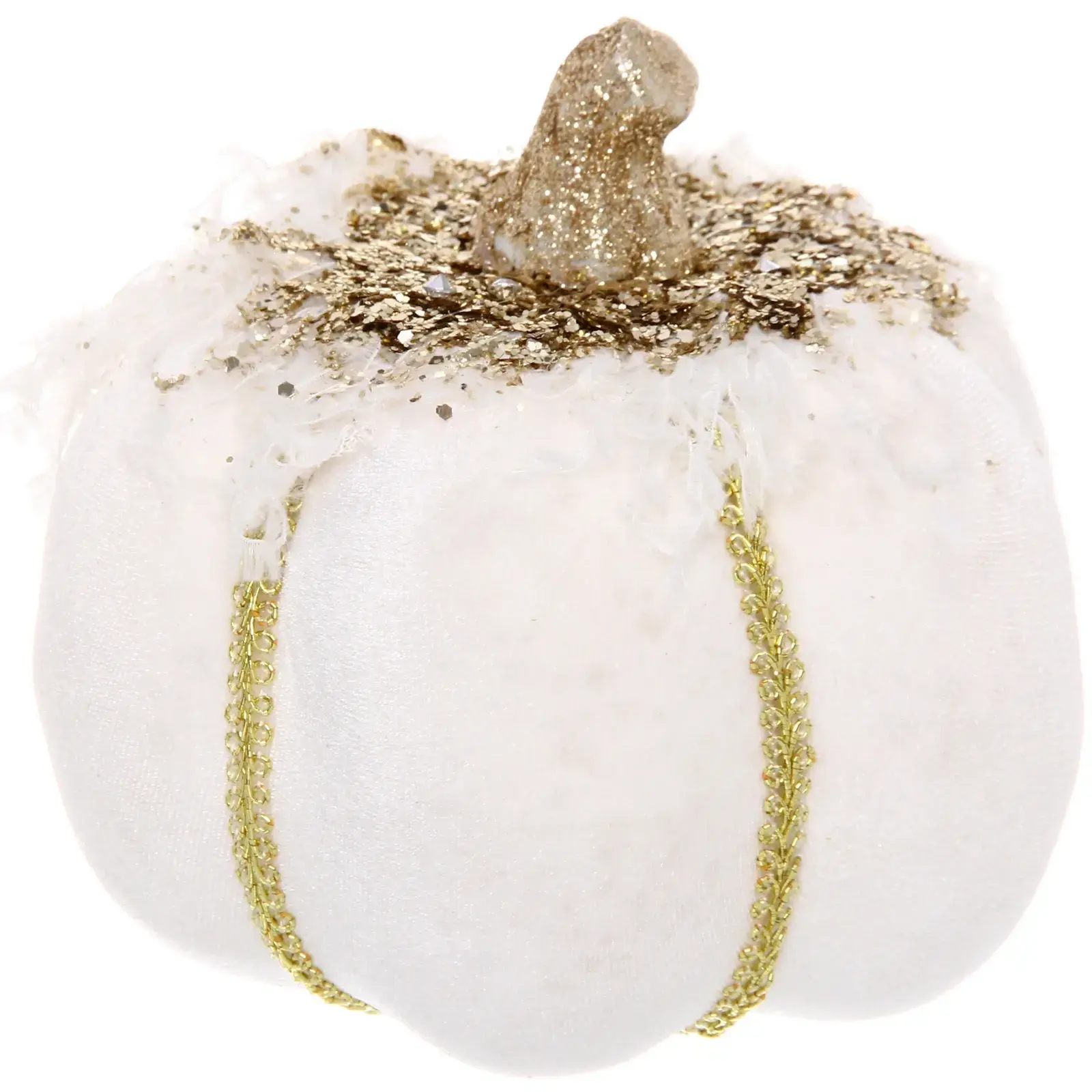 Фигурка новогодняя "Сказочная тыква" 15*15*14 см, белый с золотом, текстиль/пвх