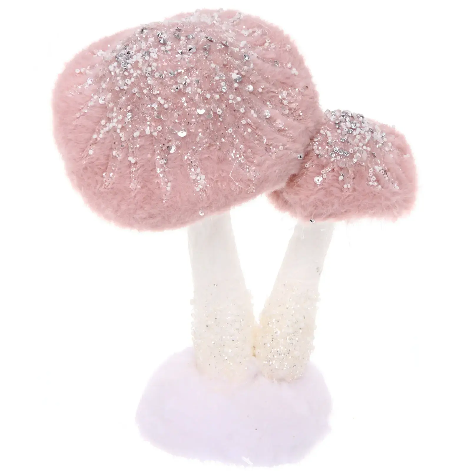 Новогодняя фигурка 'Стильные грибочки' станет ярким акцентом в вашем праздничном декоре. Роскошные розовые шляпки с мерцающими блестками и бусинами создают атмосферу волшебства.